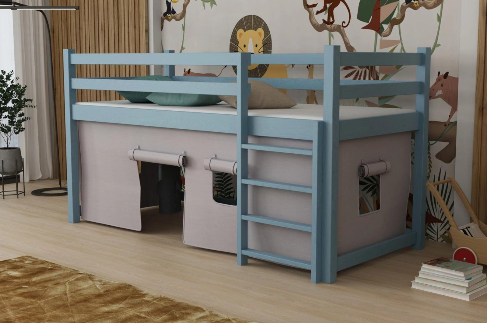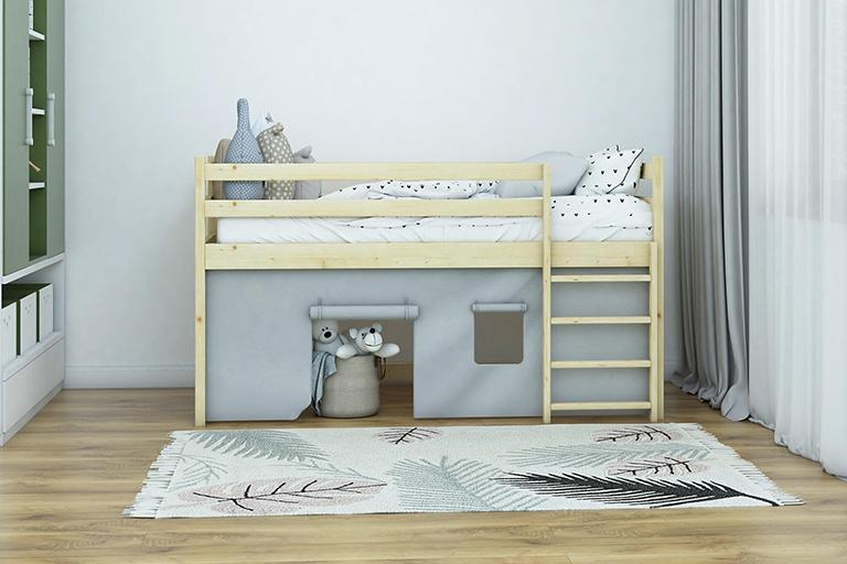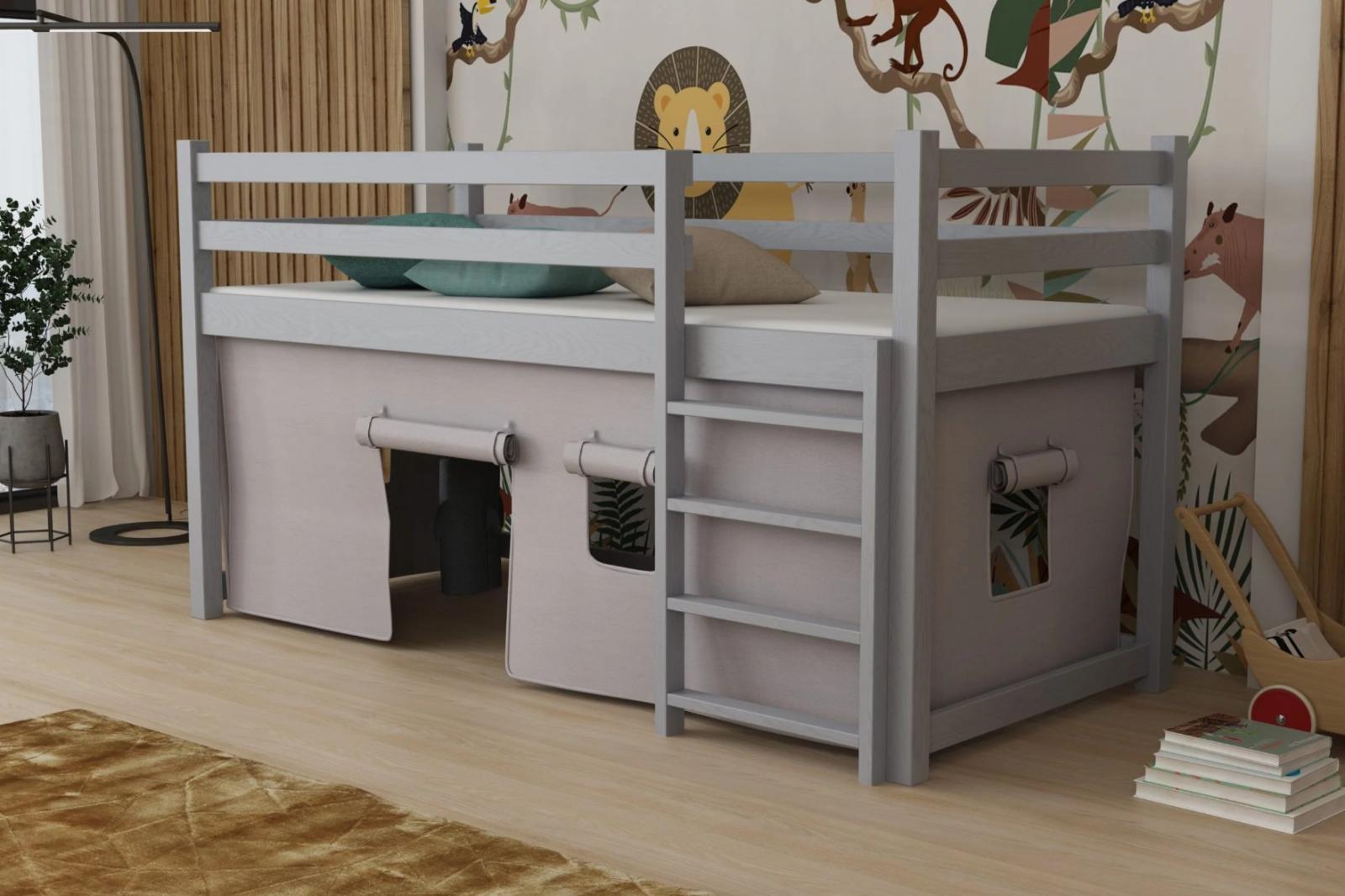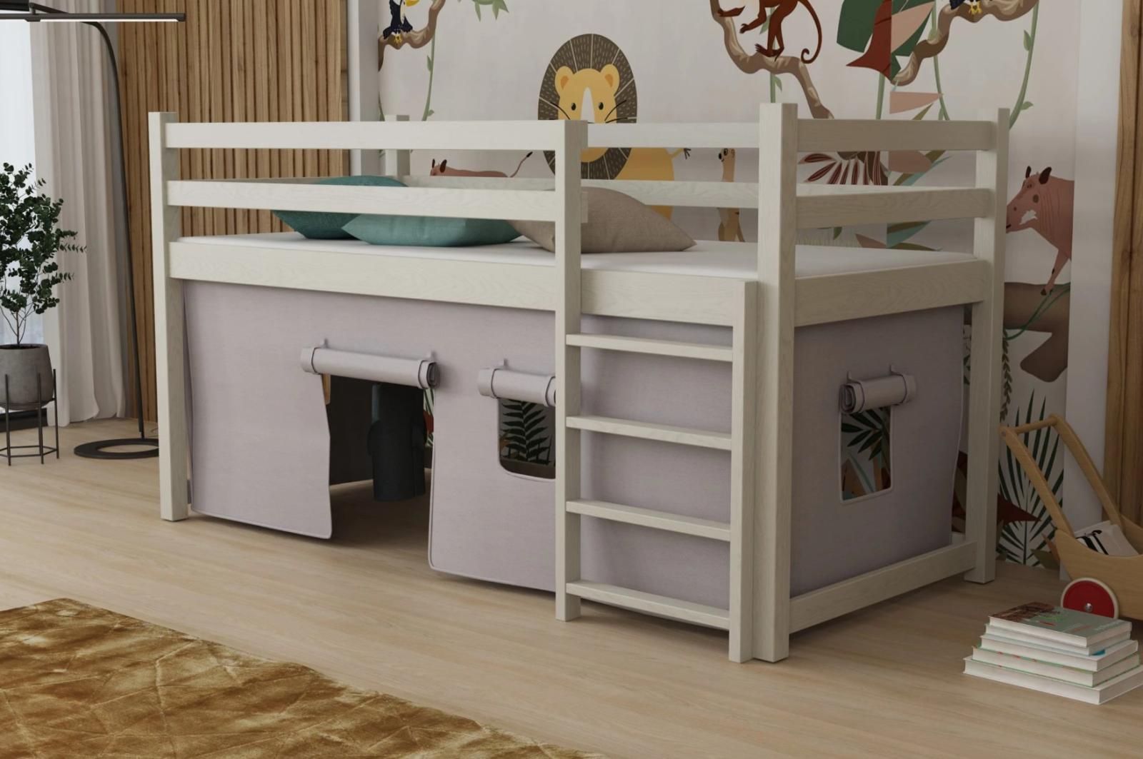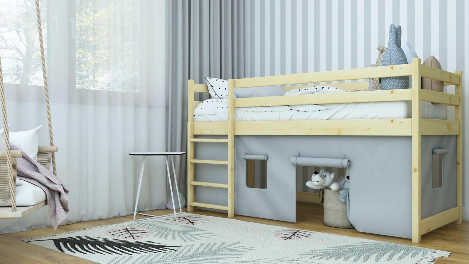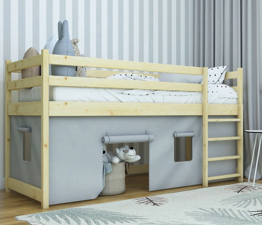 Dětská vyvýšená postel PORTO je ideálním řešením pro menší děti. Díky vyvýšené konstrukci se postel stává nejen místem k odpočinku, ale také skrýší a prostorem pro vaše oblíbené hry. Postel Porto má jednoduchou konstrukci, která svým stylem odkazuje na skandinávské interiéry, ale skvěle zapadne do každého stylu. Výběr postele Porto je perfektním řešením zejména do malých prostor. Vyvýšené patro umožňuje optimální využití dostupného prostoru a vytváří místo na spaní na vyšší úrovni. To vám umožní ušetřit místo pro další nábytek a užitné prostory, které je možno umístit pod postel. Postel Porto je vyrobená z masivního borovicového dřeva, díky čemuž je konstrukce odolná a stabilní a postel bezpečná pro dítě. U bočnic a čel je šířka použitého materiálu 2,6 cm. Postel nabízíme v několika barevných variantách, případně bez povrchových úprav. Surové dřevo nabízí přirozený vzhled. Postel je ekologická, odolná a lze ji snadno přizpůsobit - její vzhled můžete upravit mořením, lakováním nebo malováním dle vlastního uvážení. Barevné varianty jsou ošetřeny ekologickým lakem bez zápachu, který zvyšuje odolnost postele proti poškrábání. Při výběru postele Porto se nemusíte bát o bezpečnost vašeho dítěte, instalované zábradlí je pevné a odolné a vaše dítě bude při spánku řádně chráněno proti pádu. Postel je dodávána s žebříkem, jehož montáž je možná na pravou i levou stranu postele. Široké nášlapy zaručují jednoduchý přístup na lůžko. K posteli obdržíte zdarma šedý látkový závěs, který umožní vašemu dítěti vytvořit si soukromí a úkryt na hraní a zábavu.