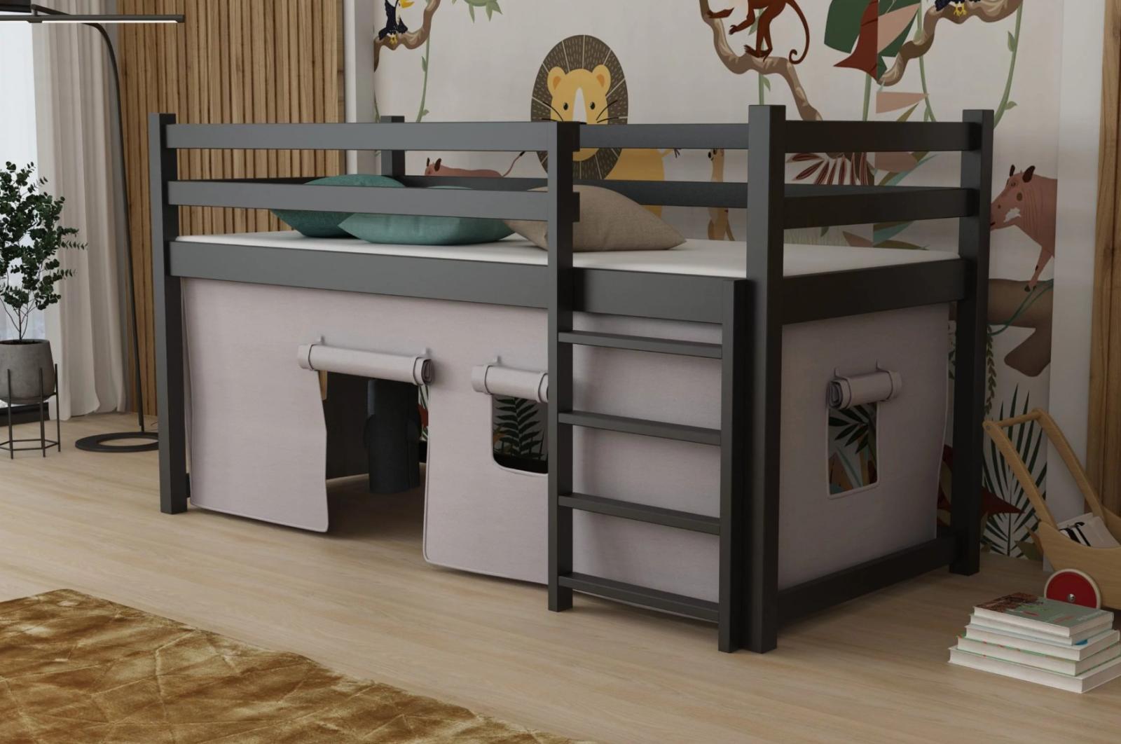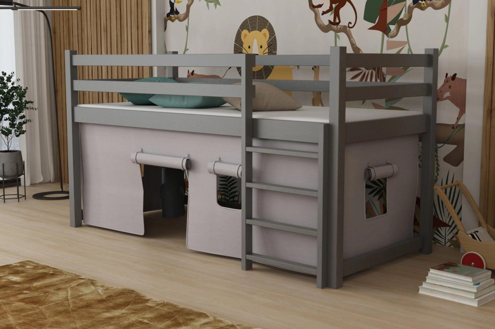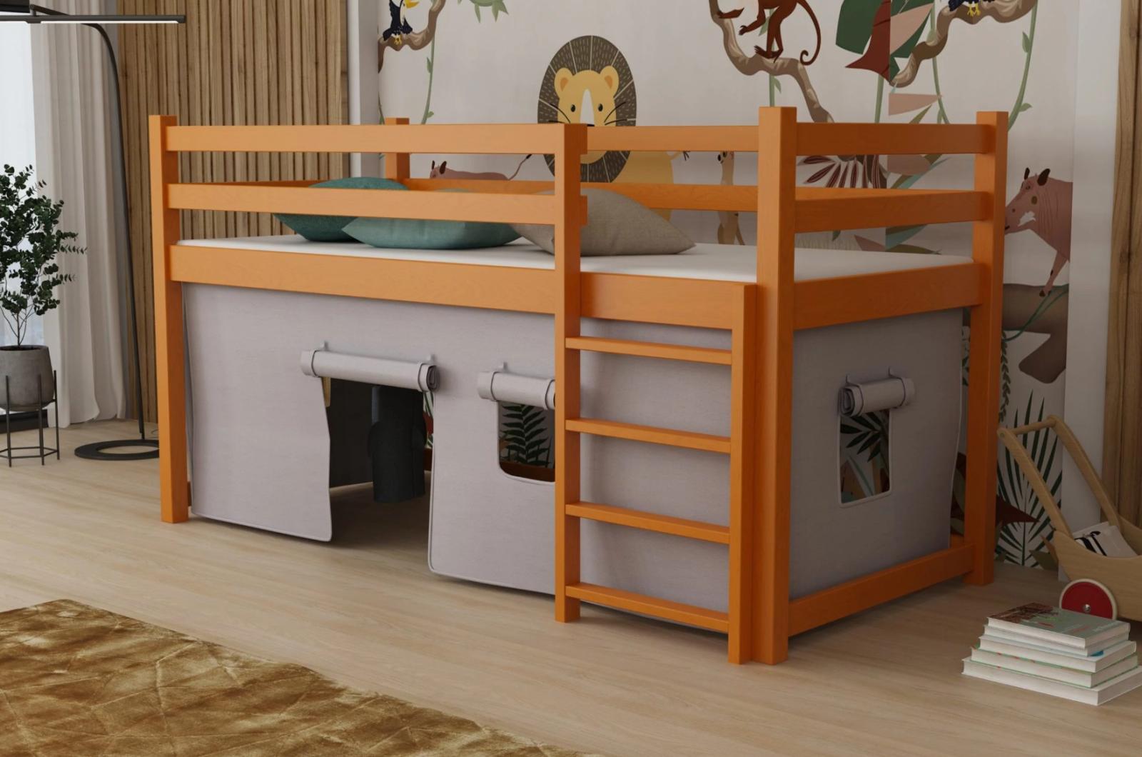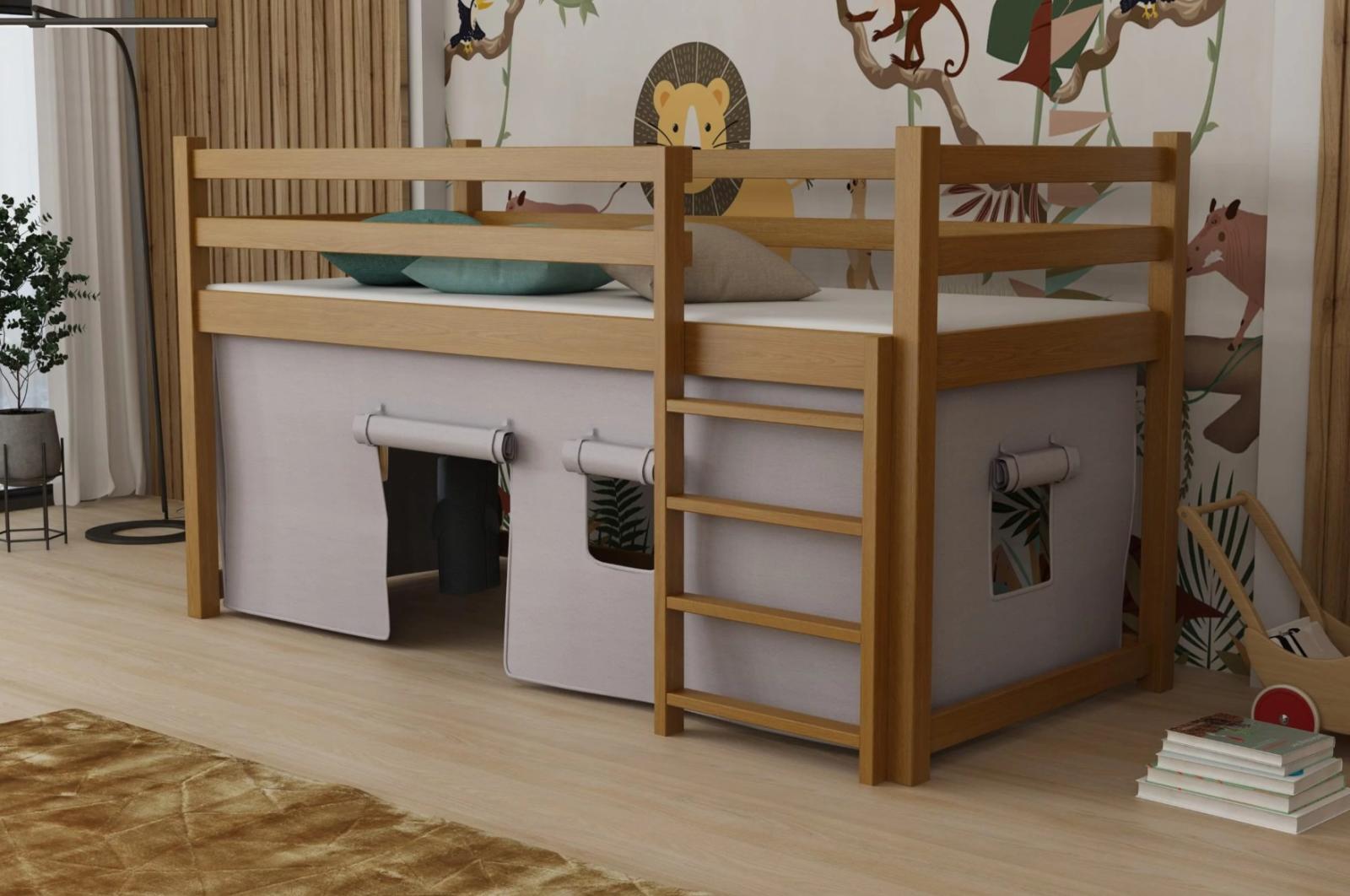 Dětská vyvýšená postel PORTO je ideálním řešením pro menší děti. Díky vyvýšené konstrukci se postel stává nejen místem k odpočinku, ale také skrýší a prostorem pro vaše oblíbené hry. Postel Porto má jednoduchou konstrukci, která svým stylem odkazuje na skandinávské interiéry, ale skvěle zapadne do každého stylu. Výběr postele Porto je perfektním řešením zejména do malých prostor. Vyvýšené patro umožňuje optimální využití dostupného prostoru a vytváří místo na spaní na vyšší úrovni. To vám umožní ušetřit místo pro další nábytek a užitné prostory, které je možno umístit pod postel. Postel Porto je vyrobená z masivního borovicového dřeva, díky čemuž je konstrukce odolná a stabilní a postel bezpečná pro dítě. U bočnic a čel je šířka použitého materiálu 2,6 cm. Postel nabízíme v několika barevných variantách, případně bez povrchových úprav. Surové dřevo nabízí přirozený vzhled. Postel je ekologická, odolná a lze ji snadno přizpůsobit - její vzhled můžete upravit mořením, lakováním nebo malováním dle vlastního uvážení. Barevné varianty jsou ošetřeny ekologickým lakem bez zápachu, který zvyšuje odolnost postele proti poškrábání. Při výběru postele Porto se nemusíte bát o bezpečnost vašeho dítěte, instalované zábradlí je pevné a odolné a vaše dítě bude při spánku řádně chráněno proti pádu. Postel je dodávána s žebříkem, jehož montáž je možná na pravou i levou stranu postele. Široké nášlapy zaručují jednoduchý přístup na lůžko. K posteli obdržíte zdarma šedý látkový závěs, který umožní vašemu dítěti vytvořit si soukromí a úkryt na hraní a zábavu.