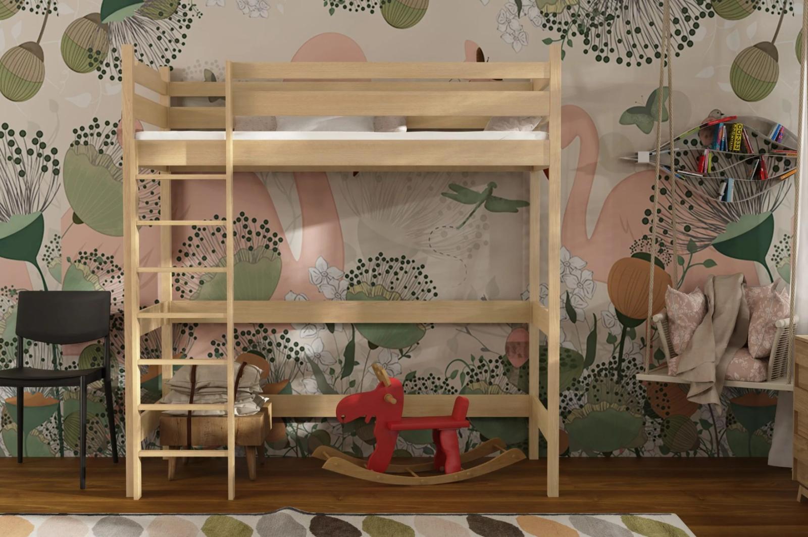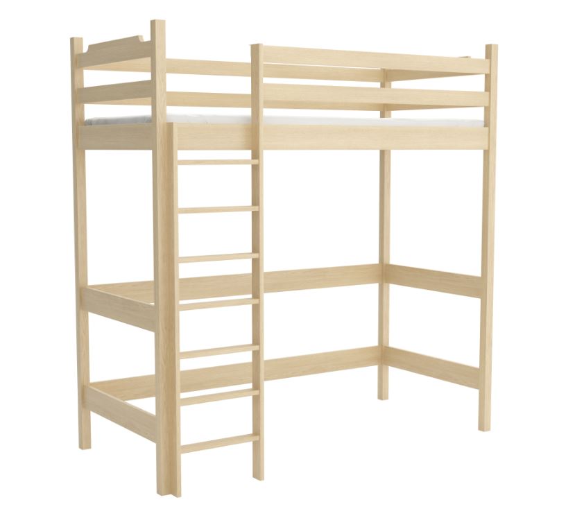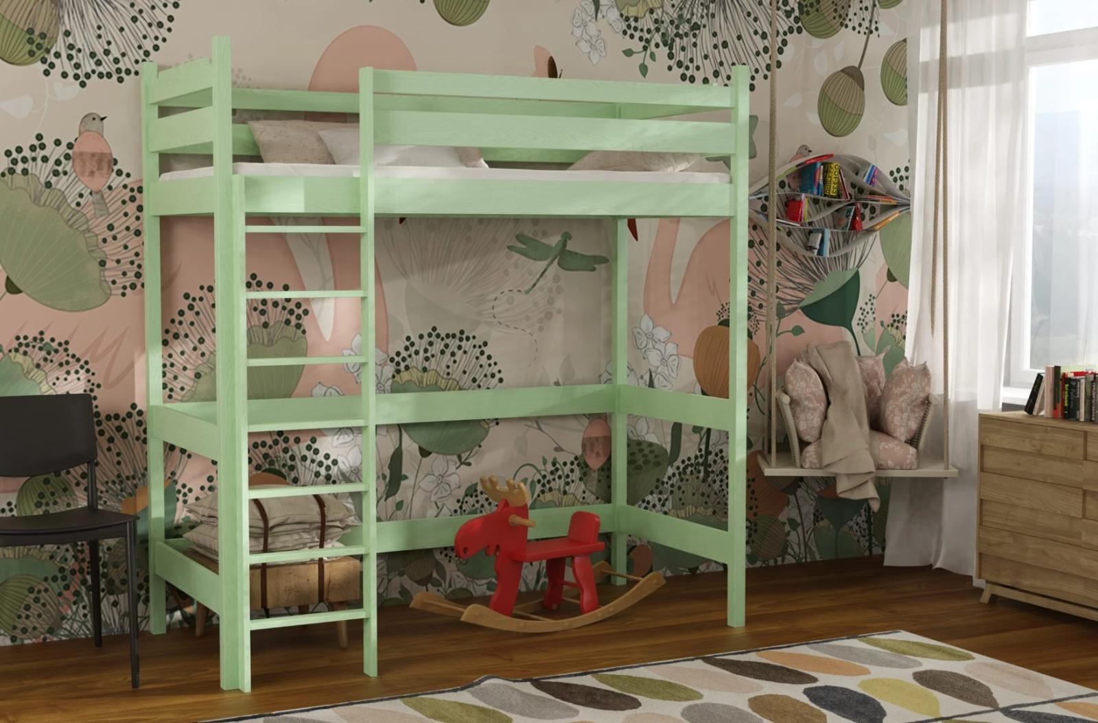 Dětská vyvýšená postel TEXAS vám pomůže maximalizovat prostor dětského pokoje. Má dostatečný prostor pro psací stůl, díky čemuž se skvěle hodí do malých interiérů. Postel Texas spojuje praktičnost s estetikou. Jde o pohodlné řešení, které skvěle doplní pokoj nejmladšího člena domácnosti. Postel je vyrobena z kvalitního masivního borovicového dřeva. Materiál je pečlivě zpracován, aby byla zajištěna trvanlivost a odolnost vůči různým faktorům. U bočnic a čel je šířka použitého materiálu 2,6 cm. Postel nabízíme v několika barevných variantách, případně bez povrchových úprav. Surové dřevo nabízí přirozený vzhled. Postel je ekologická, odolná a lze ji snadno přizpůsobit - její vzhled můžete upravit mořením, lakováním nebo malováním dle vlastního uvážení. Barevné varianty jsou ošetřeny ekologickým lakem bez zápachu, který zvyšuje odolnost postele proti poškrábání. Díky vysokým zábranám je zajištěna bezpečnost dítěte během spánku. Postel je dodávána s žebříkem, jehož montáž je možná na pravou i levou stranu postele. Široké nášlapy zaručují jednoduchý přístup na lůžko.