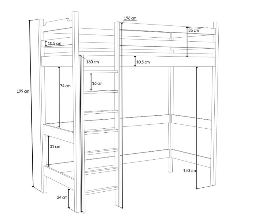 - Celková výška postele: 199 cm