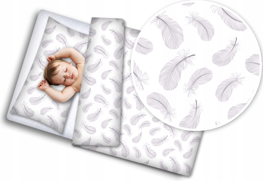 Dětské bavlněné povlečení do postýlky 120x90 cm PREMIUM - Peříčka s bílou