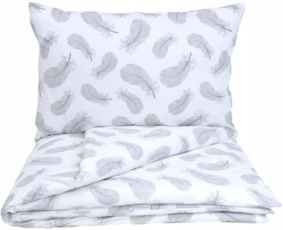 Dětské bavlněné povlečení do postýlky 120x90 cm BABYMAM PREMIUM - Peříčka s bílou