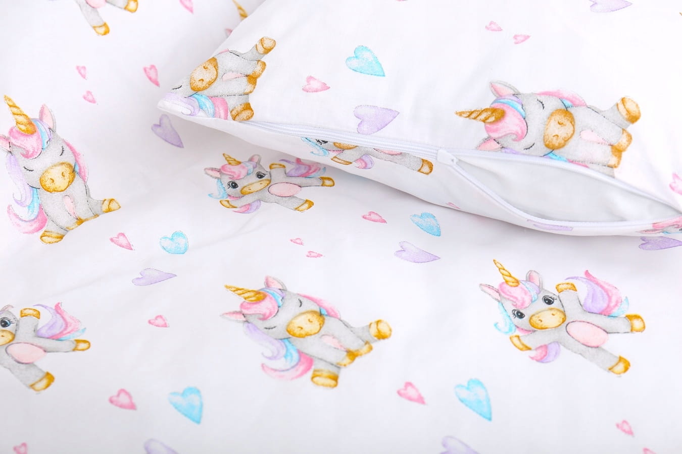 Dětské bavlněné povlečení do postýlky 135x100 cm PREMIUM - Veselý jednorožec