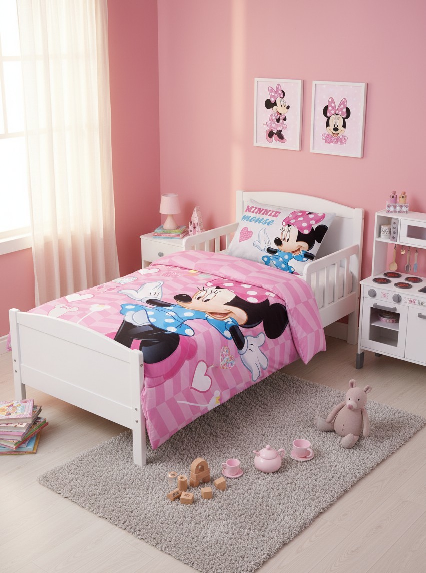 Nádherné dětské bavlněné povlečení do postýlky s roztomilým dětským motivem potěší každé dítě. Růžové povlečení do postýlky s motivem myšky Minnie vytváří krásný design pokoje a příjemné prostředí, které vašemu dítěti poskytuje pocit bezpečí. Povlečení je vyrobeno z vysoce kvalitní bavlny, je lehké a vzdušné, což zajistí příjemný spánek vašeho dítěte.