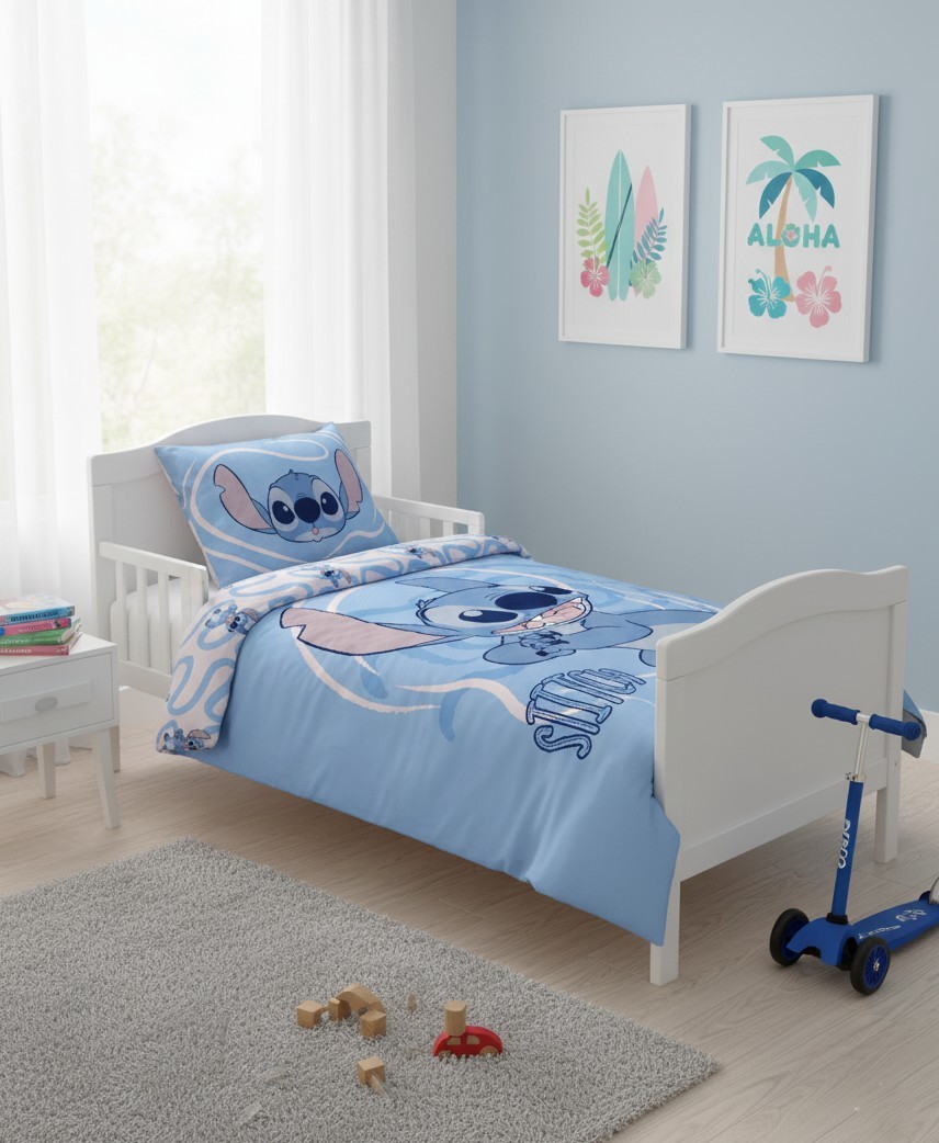 Nádherné dětské bavlněné povlečení do postýlky s roztomilým dětským motivem potěší každé dítě. Modré povlečení do postýlky s motivem Stitche vytváří krásný design pokoje a příjemné prostředí, které vašemu dítěti poskytuje pocit bezpečí. Povlečení je vyrobeno z vysoce kvalitní bavlny, je lehké a vzdušné, což zajistí příjemný spánek vašeho dítěte.