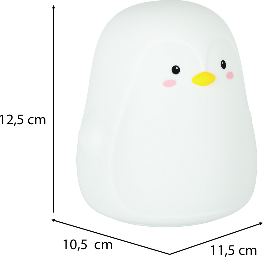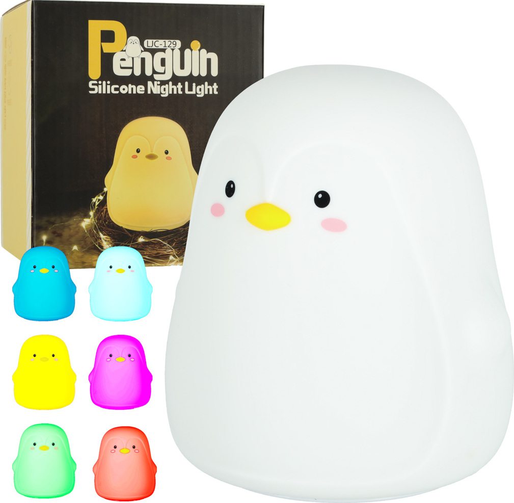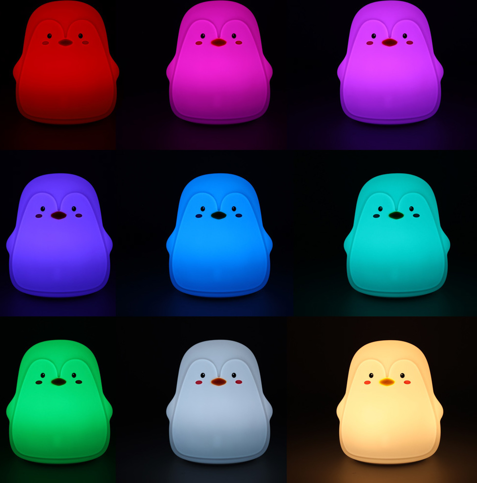 Toto dětské noční světlo je perfektním společníkem pro spánek, odhání noční můry a zajistí dětem klidný spánek. Lampa ve tvaru tučňáka svítí v různých barvách – režim RGB. Má vypínač na spodní straně, ale lze ji aktivovat i dotykem. Má vestavěnou baterii, takže ji lze umístit kamkoli.
