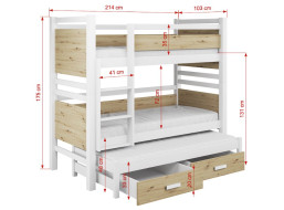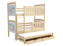 Dětská patrová postel s přistýlkou se hodí do každého pokoje, kde potřebujete nocleh pro více dětí a nemůžete dát postele vedle sebe. Nabízíme klasické dřevěné postele z masivu nebo postele vyrobené z MDF či lamino desek. Vždy dbáme na vysoký standard produktů a tak si můžete být jistí, že za své peníze dostanete nejlepší možnou postel. Postel s přistýlkou se dokonale hodí do menšího dětského pokoje, popř. pokud chcete mít zajištěný nocleh pro nečekané hosty. Přistýlka ve formě šuplíku se snadno vysune i zasune a v průběhu dne tak v dětském pokoji zůstane dostatek místa na hry i dětské aktivity.