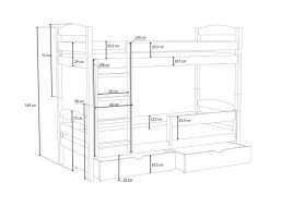 Standardní rozměry lůžek, poskytující dostatek prostoru pro pohodlný spánek a vyhovují dětem i dospívajícím:- Šířka ložné plochy: 80–90 cm.