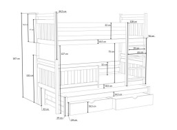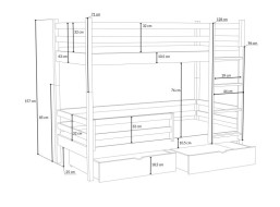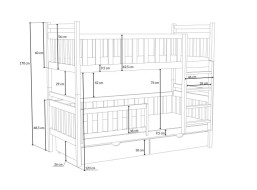 Standardní rozměry lůžek, poskytující dostatek prostoru pro pohodlný spánek a vyhovují dětem i dospívajícím:- Šířka ložné plochy: 80–90 cm.