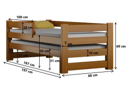 Dětská postel s výsuvnou přistýlkou z masivu ROBUST 8X8 7B - 200x80 cm