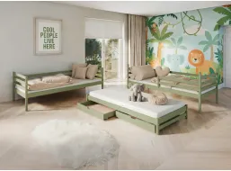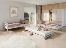 - Jednolůžkové postele pro klasický dětský pokoj s možností přistýlky a úložných prostorů v podobě šuplíků.