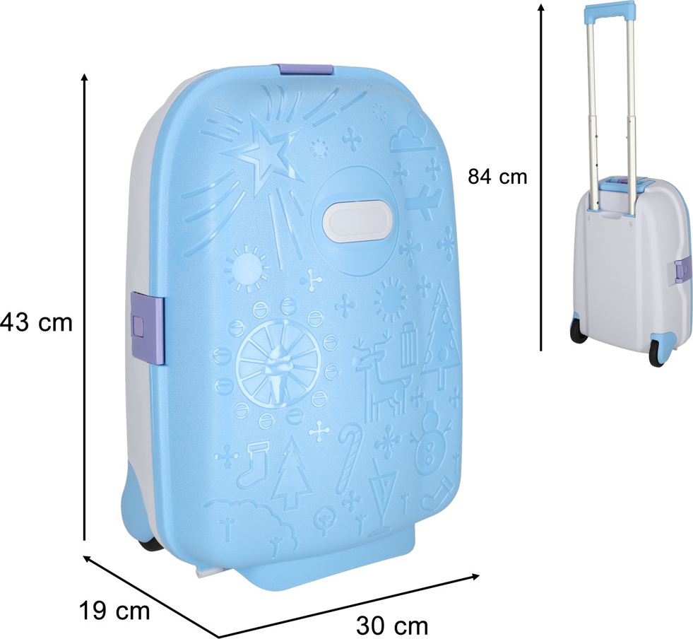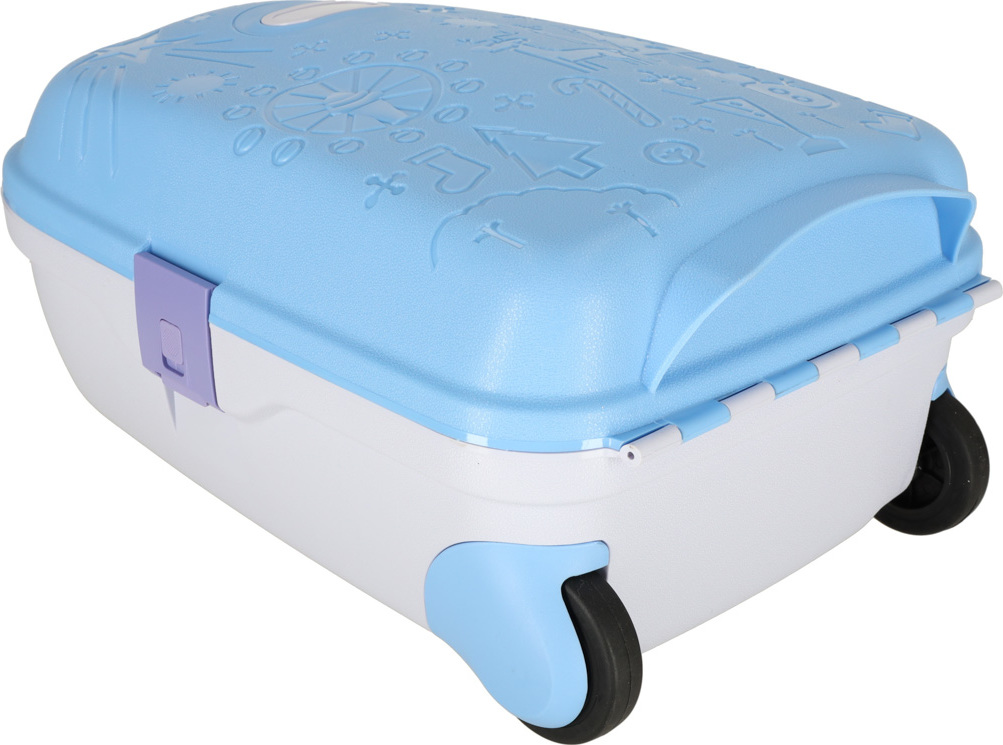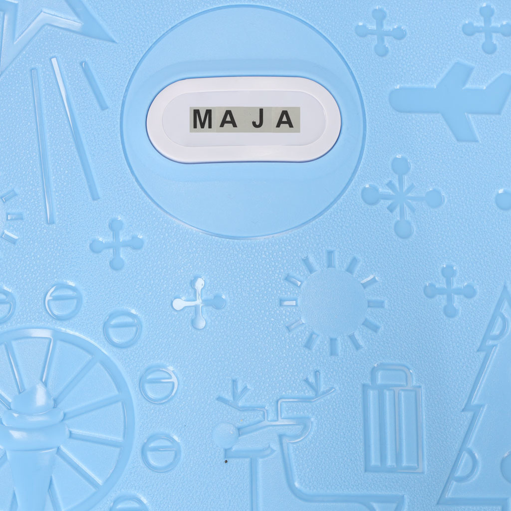Vlastní kufr je ideální pro každého malého cestovatele připraveného na nová dobrodružství! Modrá barva a zajímavé vzory upoutají pozornost vašeho dítěte a možná ho i povzbudí k tomu, aby si sbalilo svůj vlastní. Součástí sady jsou také samolepky na podepsání zavazadla.