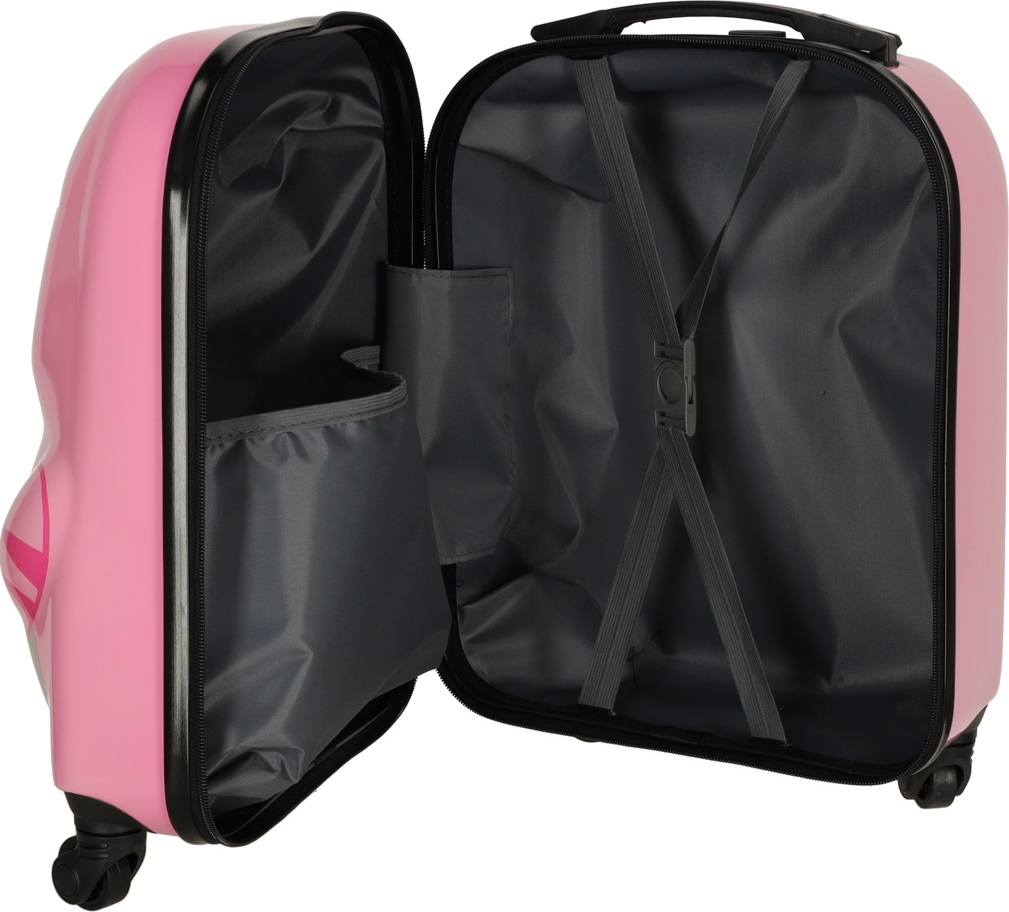 Tento růžový dětský kufr s grafikou kočky je perfektním doplňkem pro malého průzkumníka. Pro maximální cestovní pohodlí má kufr zatahovací rukojeť pro snadné tahání a čtyři kolečka otočná o 360 stupňů. Uvnitř si děti snadno uloží veškeré své cestovní vybavení – interiér má dvě přihrádky a je podšitý. Oboustranný zip zajišťuje bezpečnost sbalených předmětů. Díky kompaktním rozměrům je ideální jako příruční zavazadlo.