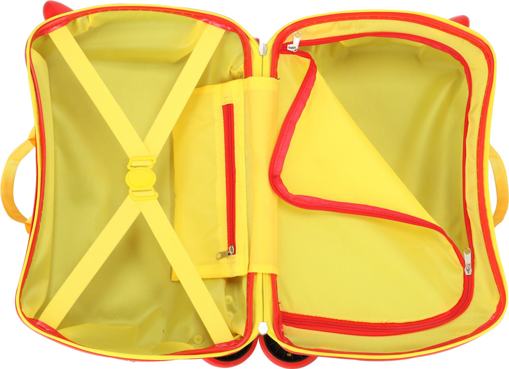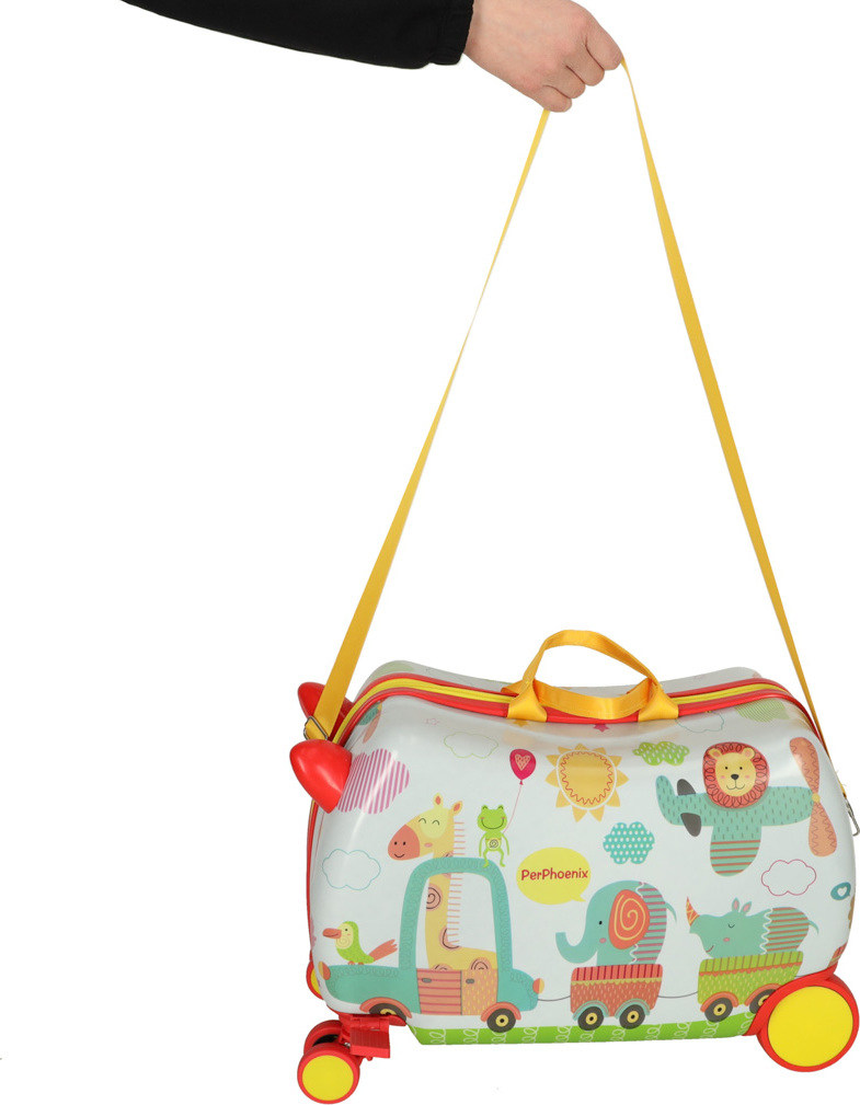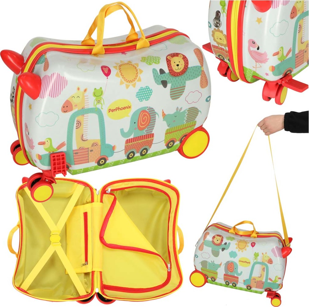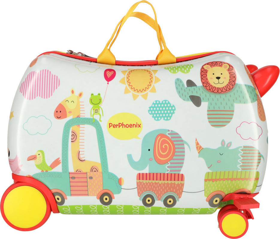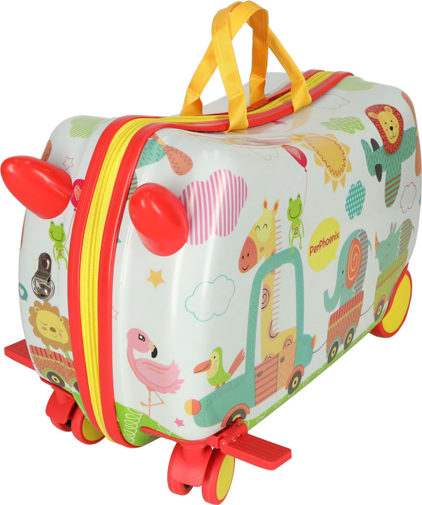 Tento dětský kufr s motivem zoo umožní nejmenším cestovat stylově. Díky čtyřem kolečkům se s ním snadno manipuluje, a to i při plném naložení. Uvnitř se nachází dvě velké přihrádky a kapsa na drobnosti. Unikátním prvkem jsou opěrky nohou, které umožňují unaveným dětem pohodlně se usadit na kufr a odpočinout si. Zapíná se na zip.