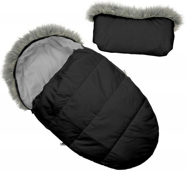 Dětský fusak do kočárku s kožešinou a rukávníkem – černo-šedý (22)