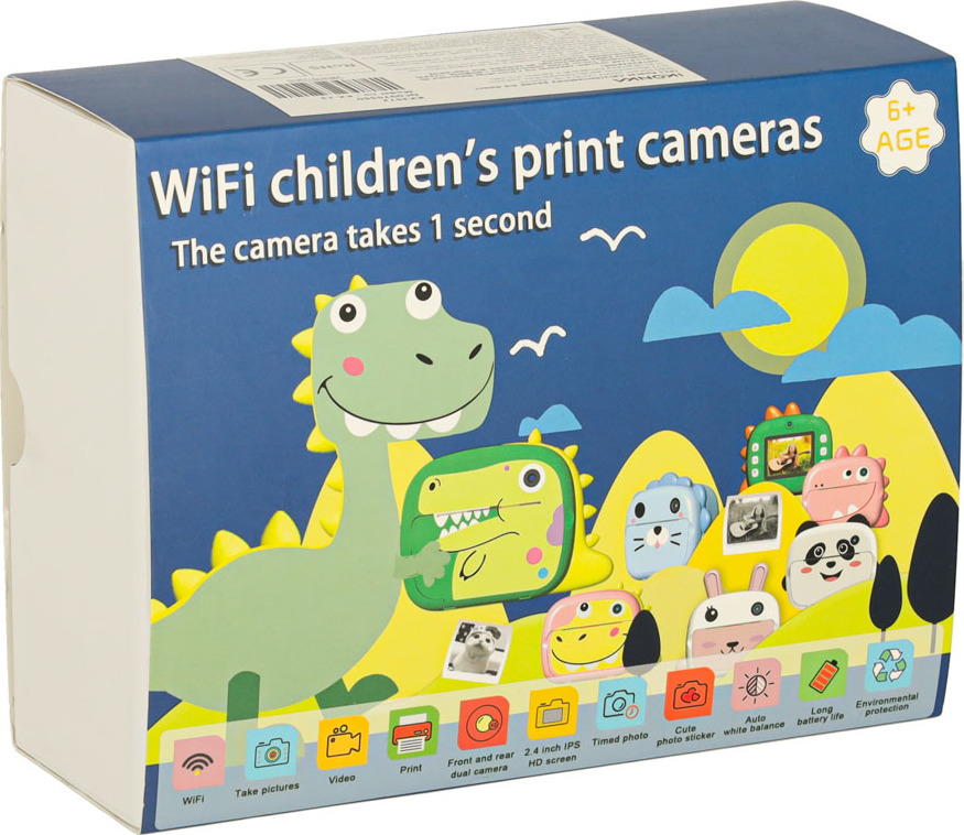 Tento dětský fotoaparát s instantní technologií je hračkou pro mladé nadšence fotografování. Umožňuje nahrávat videa v rozlišení 1080p a pořizovat fotografie, které lze okamžitě vytisknout díky vestavěné termotiskárně. Fotoaparát se připojuje k Wi-Fi a spolupracuje se specializovanou aplikací, která umožňuje rychlý přenos fotografií mezi zařízeními. Je vybaven baterií 7,4 V s kapacitou 800 mAh, která se nabije přibližně za 130 minut. Zařízení podporuje paměťové karty s kapacitou až 32 GB, což poskytuje dostatek místa pro fotografie a videa. Sada obsahuje tři role tiskového papíru, šňůrku na krk a USB kabel.