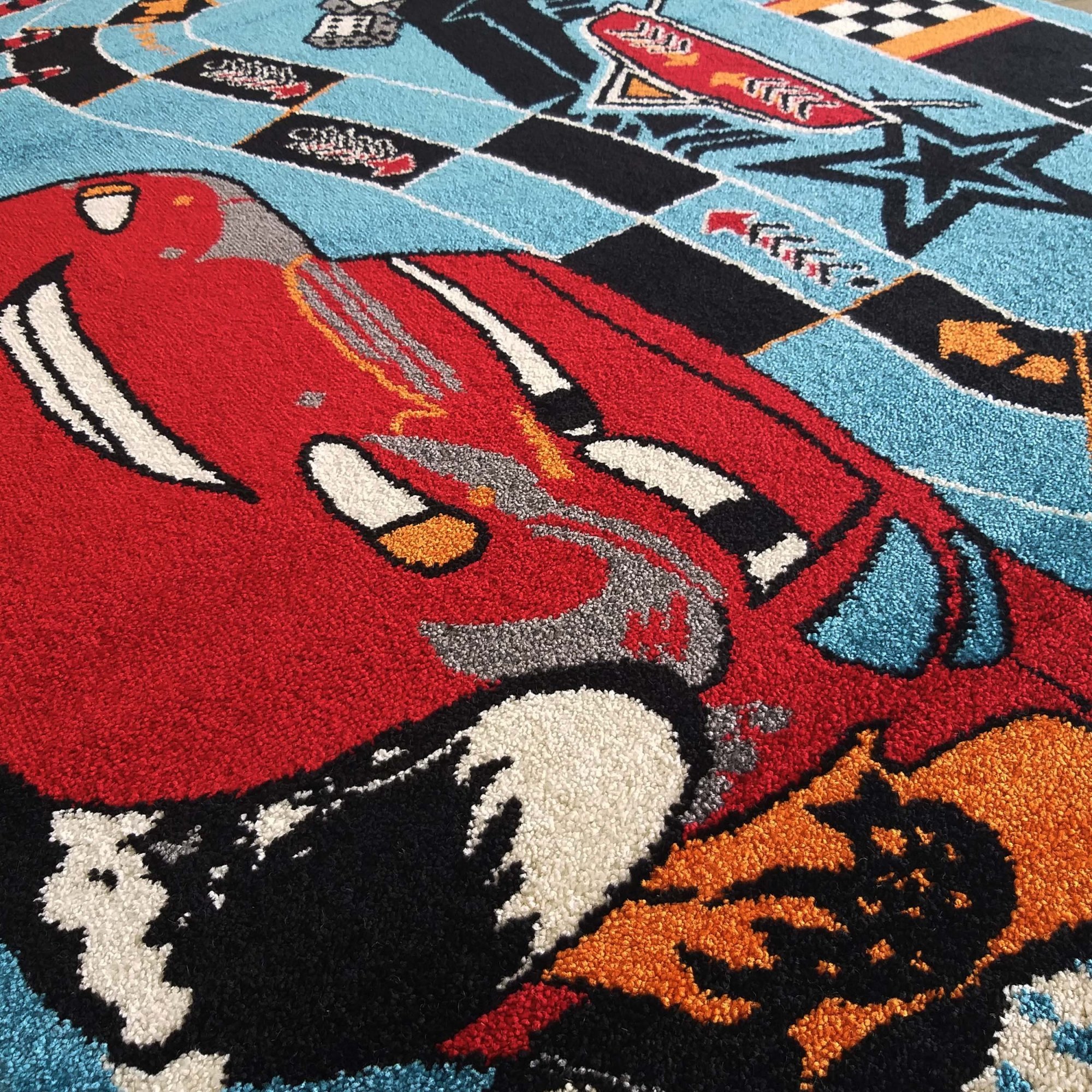 Moderní koberec, který potěší každého malého závodníka a fanouška známé animované pohádky. Koberec má krásné syté barvy odolné proti vyblednutí a součástí jeho vzoru je také závodní dráha, na které si užijete spoustu legrace. Koberec je vyroben z kvalitní polypropylenové příze, která zajišťuje, že je koberec měkký a příjemný na dotek. Díky elastickému vláknu se nebudete muset obávat deformace ani při intenzivním používání. Při každodenním používání oceníte jeho snadnou údržbu, měkkost a exkluzivní vzhled, stejně jako nejvyšší kvalitu zpracování.