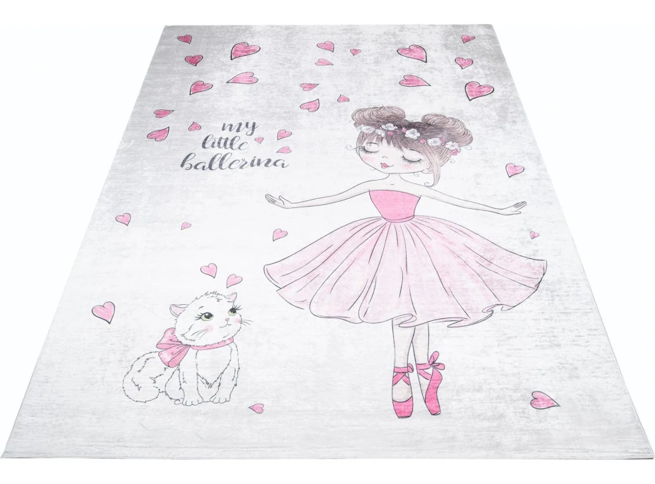 Dětský koberec EMMA - Baletka s kočičkou - bílý