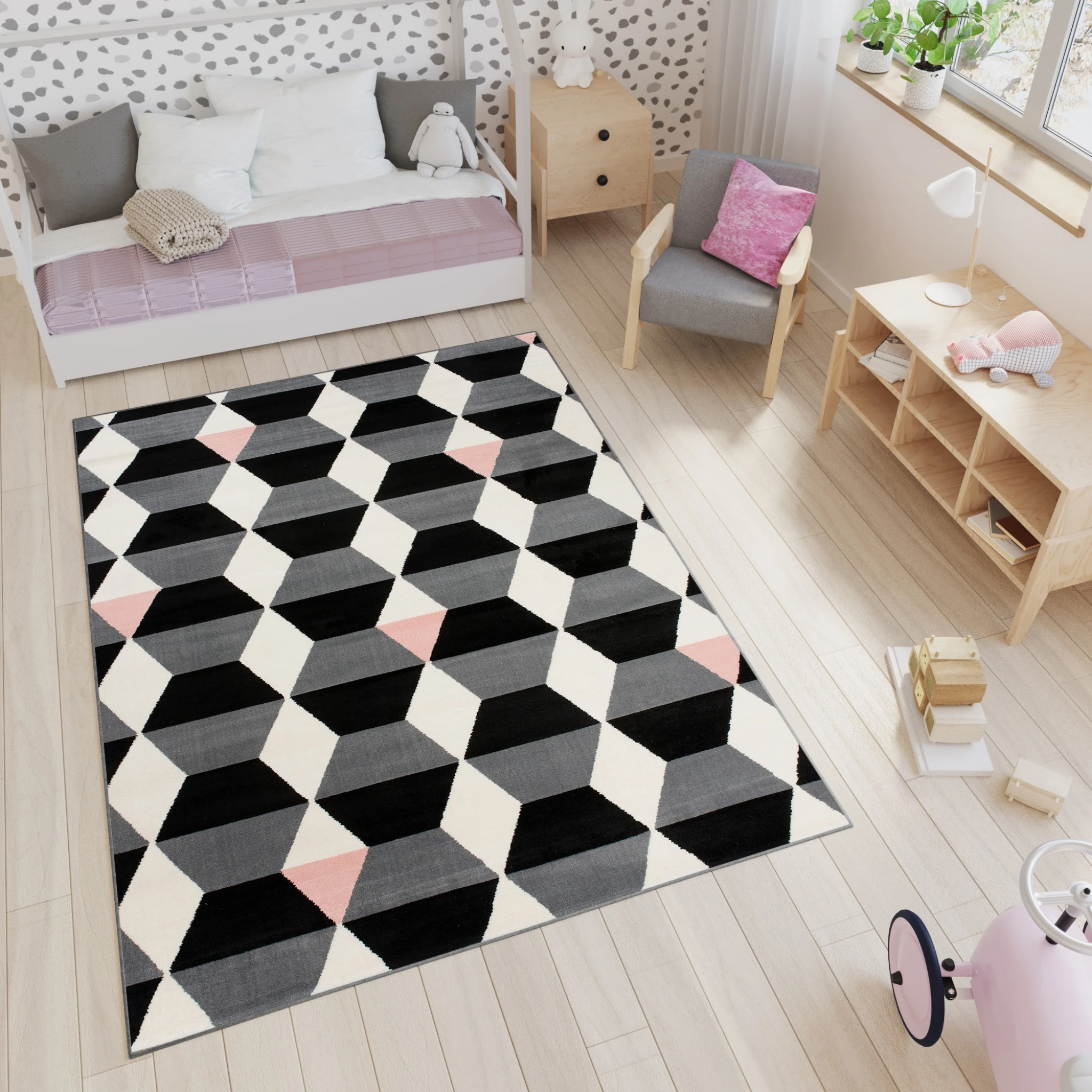Dětský koberec NOX kvádry - šedý/béžový/černý