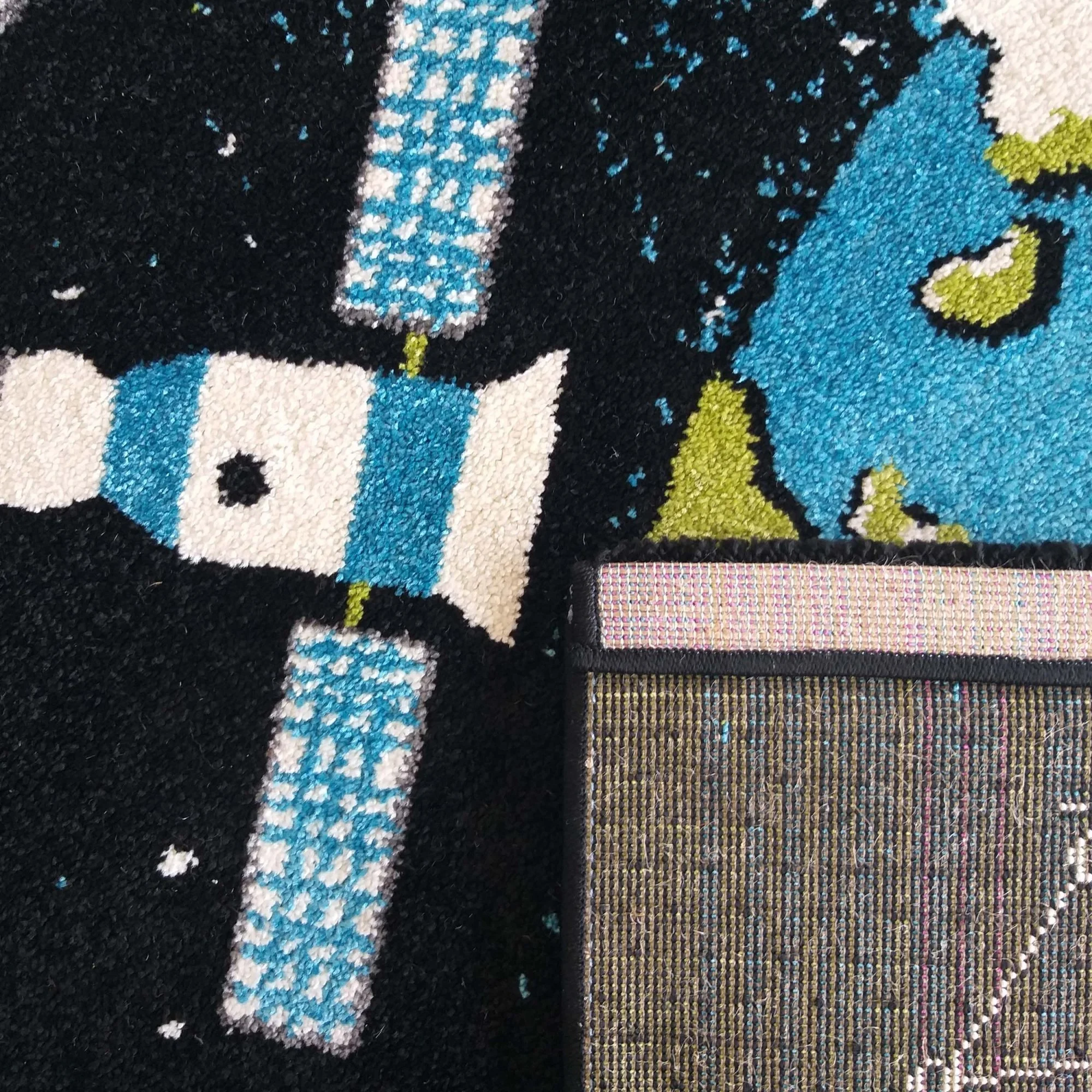 Krásný dětský koberec s motivem vesmíru si zamiluje každý malý kosmonaut a vesmírný objevitel. Předností koberce jsou krásné syté barvy odolné vůči vyblednutí. Koberec je vyrobený z pružného polypropylenového vlákna, které mu zaručuje odolnost vůči deformacím i při internivzním používání. Koberec je navíc měkký a velmi příjemný na dotek.