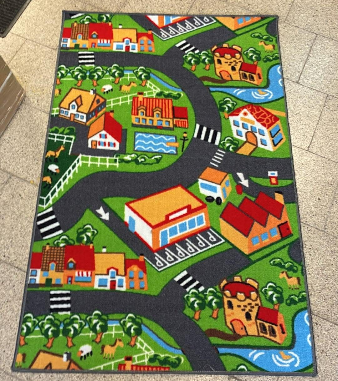 Dětský kusový koberec Vesnička s uličkami a domy patří mezi jeden z nejoblíbenějších koberců pro děti vůbec. Koberec je velmi příjemný na dotek, snadno se udržuje, je odolný vůči oděru, vyblednutí barev vlivem slunečních paprsků, chemickým prostředkům i molům. Vyroben je z polypropylenu, obšití je z každé strany koberce. Podklad koberce tvoří teplá plsť, chránící Vaše dítě před chladem od podlahy, takže si na něm může hrát dlouhé hodiny. Koberec vlastní hygienický atest a je zdravotně nezávadný. Dětské kusové koberce ze 100% polypropylenu patří k nejlevnějším kobercům na českém trhu, což jim ale neubírá na kvalitě, a proto se těší největší popularitě.