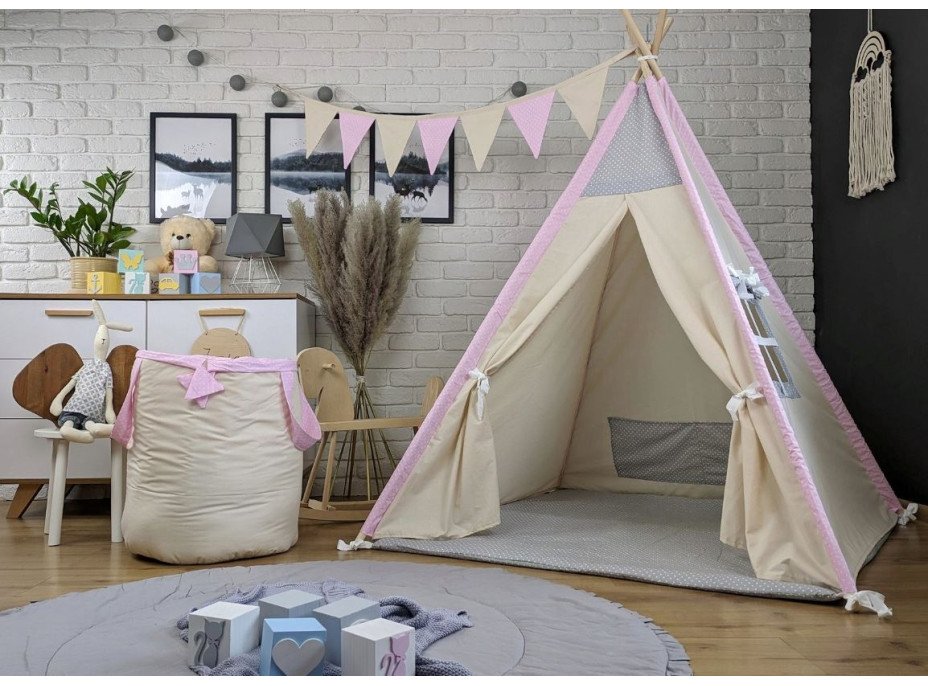 K dětskému Teepee (Týpí) nebo pouze samostatně lze dokoupit krásný a praktický koš na hračky, který má dvojí využití. Může sloužit jako klasický koš na hračky nebo také jako uzavíratelný vak, který můžete bezpečně uzavřít. Hračky uložené uvnitř se tak nevysypou. Dětský koš na hračky skvěle ladí s daným týpí a celý komplet tak uvede k dokonalosti a vaše dítě bude mít ten nekrásnější pokojíček na odpočinek i na hraní.
