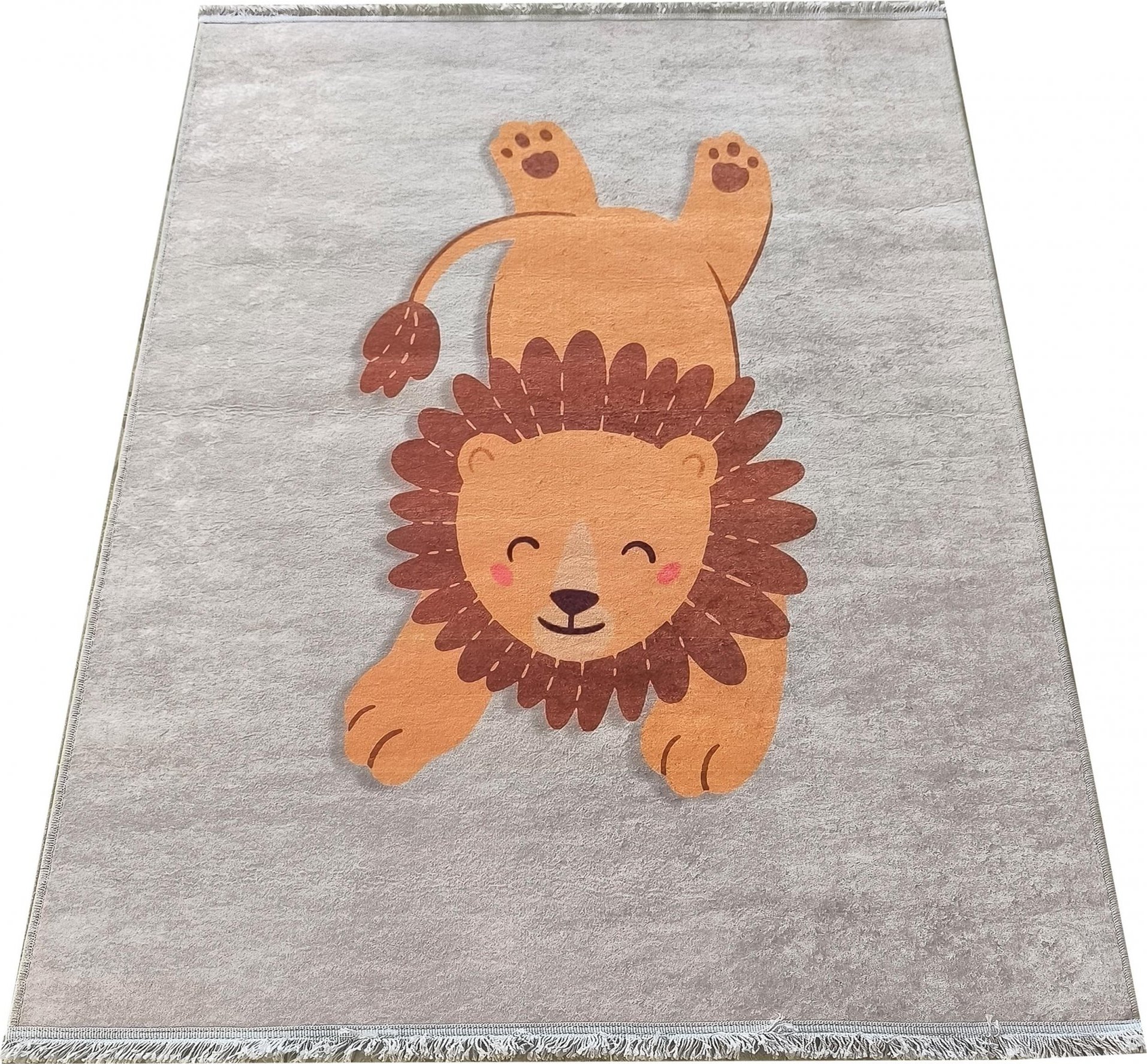 Koberec Honor New Lev je okouzlující a roztomilý koberec do dětského pokoje. Vyberte si tento model, pokud hledáte zajímavý a nekonvenční nápad na koberec do dětského pokoje! Tento dětský koberec se vyznačuje originálním barevným schématem. Krásné šedé odstíny jsou kombinovány s jemnými odstíny oranžové a hnědé barvy. Tento koberec bude krásným doplňkem dětského pokoje, zejména v moderním interiéru ve skandinávském stylu nebo v místnosti zařízené v bílé, šedé nebo béžové barvě.