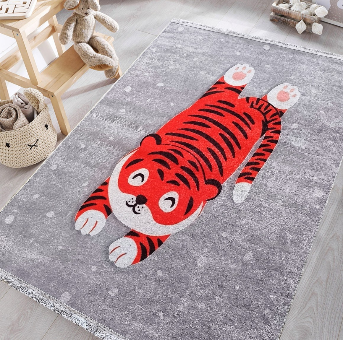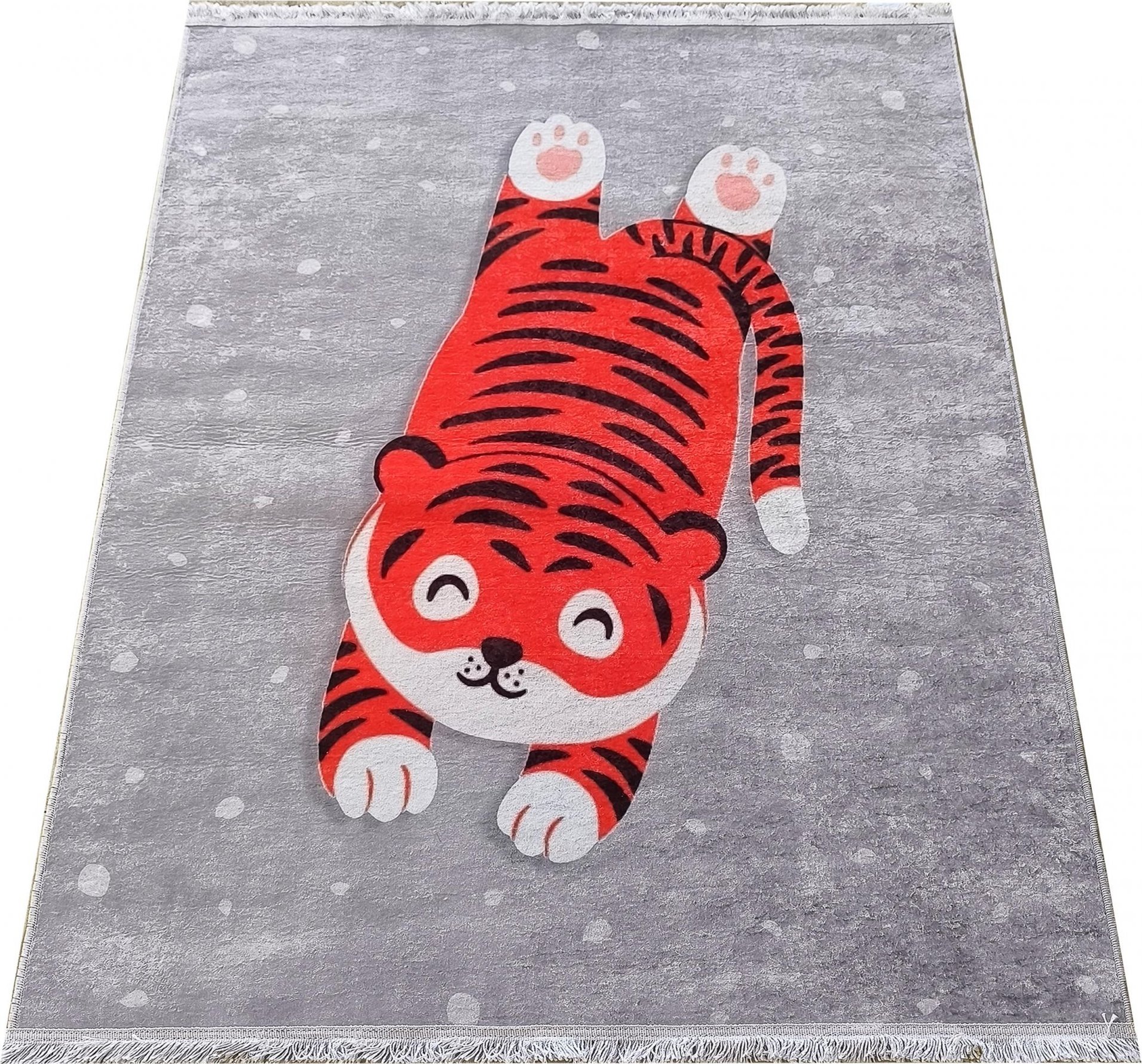 Koberec Honor New Tygr je okouzlující a roztomilý koberec do dětského pokoje. Vyberte si tento model, pokud hledáte zajímavý a nekonvenční nápad na koberec do dětského pokoje! Tento dětský koberec se vyznačuje originálním barevným schématem. Krásné šedé odstíny jsou kombinovány s výraznými odstíny červené a černé barvy. Tento koberec bude krásným doplňkem dětského pokoje, zejména v moderním interiéru ve skandinávském stylu nebo v místnosti zařízené v bílé, šedé nebo béžové barvě.
