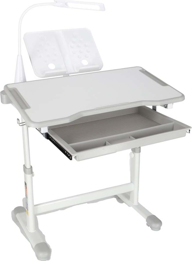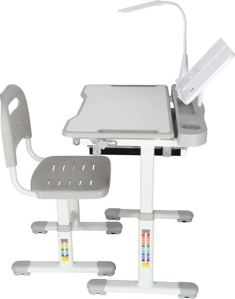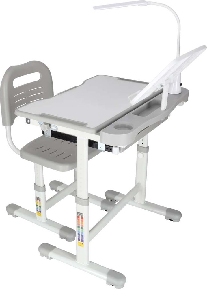 Dětský nastavitelný psací stůl se zásuvkou, židlí a LED lampou - šedý