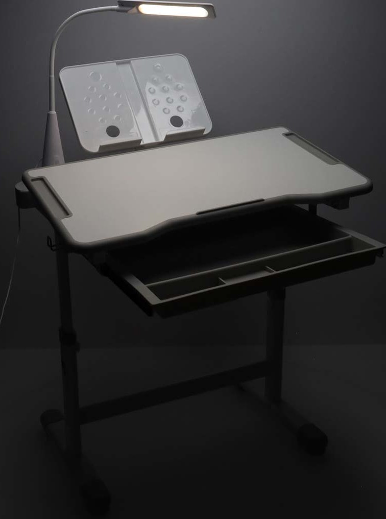 Ergonomický dětský stůl s nastavitelnou výškou, výsuvnou policí a držákem na knihy poskytuje dětem klidné místo pro učení a cvičení v pohodlí domova. Součástí je i pohodlná, nastavitelná dětská židle s opěradlem. Dobře navržený stůl a židle významně ovlivňují zdraví dítěte. Tyto kusy nábytku jsou výškově nastavitelné, což jim umožňuje růst s dítětem. Stůl nabízí mnoho funkcí – otevírací deska stolu umožňuje organizaci a úhlednost. Držák na knihy k dětskému stolu zajišťuje pohodlné používání učebnic A5 a B5. Stůl je navíc vybaven držákem na kelímky a háčkem na batoh nebo tašku. Dětský stůl s LED osvětlením pomůže vašemu dítěti soustředit se na daný úkol, což pozitivně ovlivní osvojování a uchovávání znalostí.