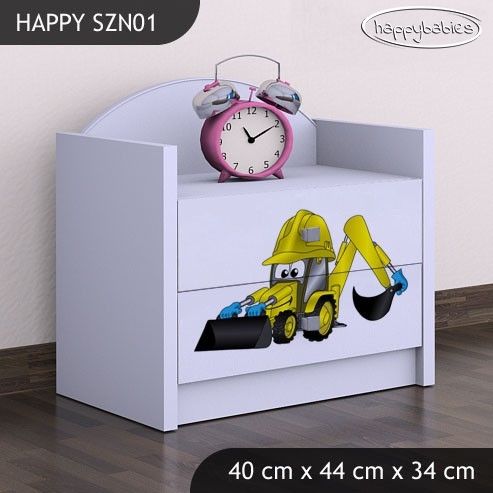 Noční stolek tvoří především funkční doplněk k dětské posteli. Pokud je vhodně sladěn s postelí, má však také svoji estetickou funkci. Každé dítě jistě ocení odkládací plochu u své postele. Vyberte mu některý ze široké nabídky dětských nočních stolků v mnoha barvách a provedeních za nízké ceny! Nabízíme stovky vzorů dětských nočních stolků pro chlapce i děvčata. Dětské noční stolky jsou vyrobeny z vysoce kvalitní lamino desky, na čele mají krásný barevný potisk, který se Vašemu dítěti jistě zalíbí.