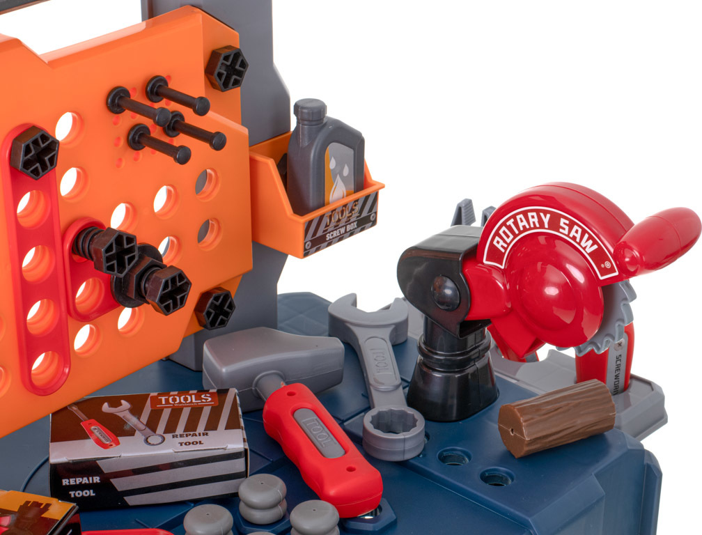 Dílna malého kutila je hračka pro děti, které se chtějí stát opravdovými kutily a provádět drobné opravy v domácnosti! Sada obsahuje široký výběr nářadí nezbytného pro každého malého kutila. Mezi příslušenství patří šrouby s objímkami, šroubovák, kleště a kladivo. Všechny položky jsou baleny v praktickém přepravním pouzdře, které lze během několika sekund proměnit v pracovní stůl. Tato hračka rozvíjí jemnou motoriku, obratnost a kreativitu a zároveň učí základní principy obsluhy nářadí.