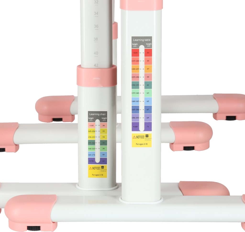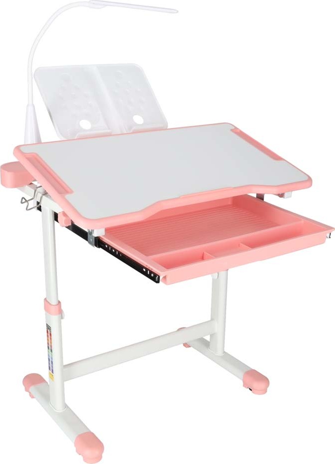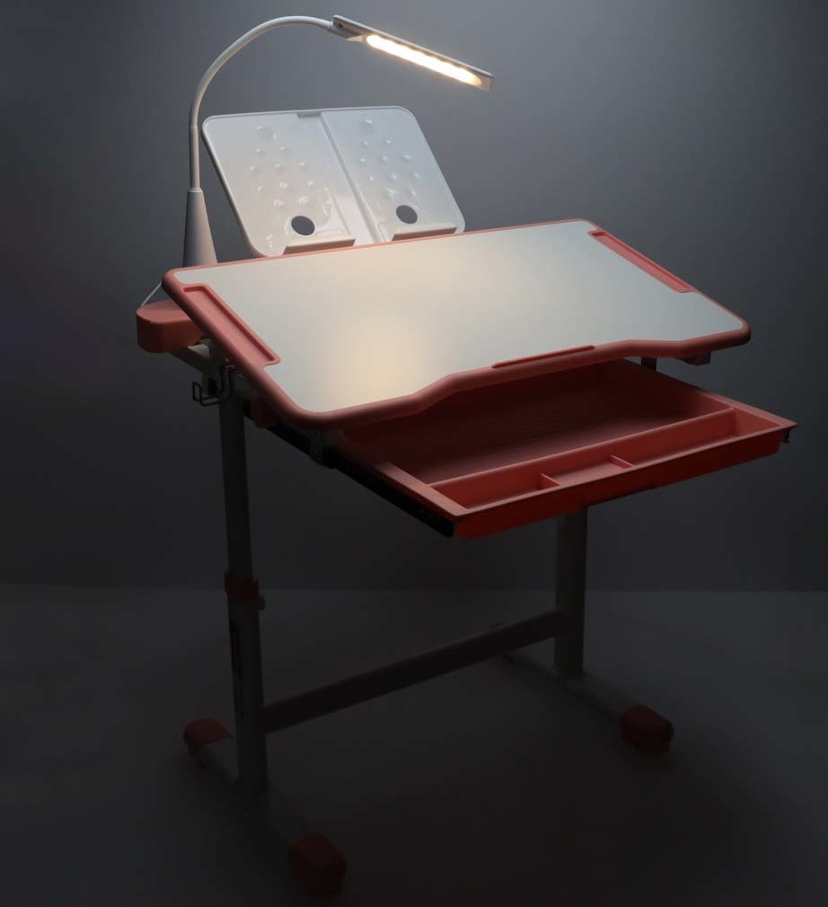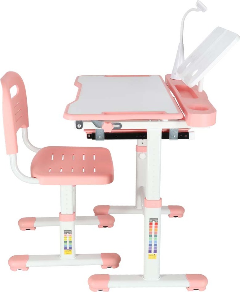 Správné nastavení stolu má významný vliv na zdraví dítěte a výškově nastavitelný dětský stůl s ním „roste“. Pomocí šroubů můžete nastavit výšku dětského stolu podle věku a výšky dítěte. Minimální výška stolu je 53 cm a maximální 72 cm. To znamená, že jej mohou používat děti školního věku, od batolat až po o něco starší děti. Nastavitelná dětská židle unese až 80 kg, takže je stabilní a praktická. Otevírací deska stolu a zásuvka pro dětský stůl s přihrádkami umožňují uložení potřeb na jednom místě. Rozměry držáku na knihy – 35,5 cm x 26 cm – odpovídají formátu B4. Snadno se do něj vejde kniha nebo sešit A5 (14,8 cm x 21 cm) nebo B5 (17,6 cm x 25 cm) a také list A4 na šířku (21 cm x 29,7 cm). Stůl je navíc dodáván s LED lampou, kterou lze připevnit k desce stolu. LED diody vyzařují studené nebo teplé světlo, které lze nastavit podle denní doby a individuálních preferencí. Stůl má také připevnitelnou rukojeť pro zavěšení batohu, tašky nebo příslušenství.