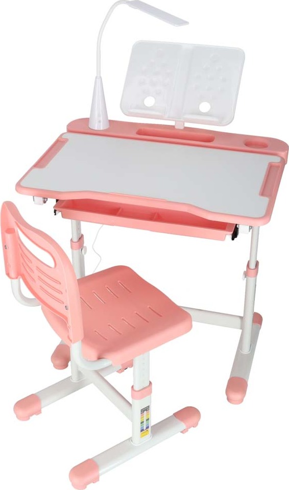 Dětský psací stůl se zásuvkou, židlí a lampou - růžová
