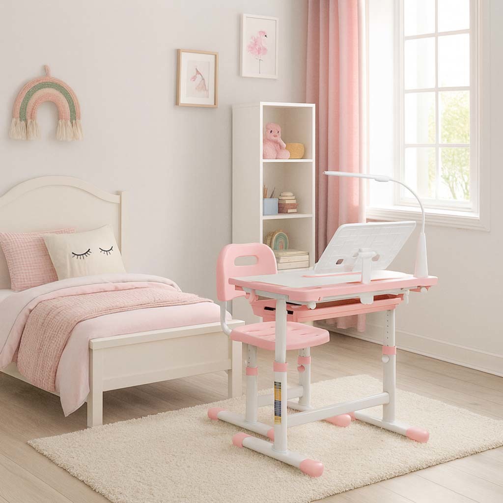Dobře navržený stůl s optimálním vybavením zajistí pohodlnou práci od útlého věku, což pozitivně ovlivní efektivitu učení vašeho dítěte. Ergonomický dětský stůl s nastavitelnou židlí umožní vašemu dítěti relaxovat a soustředit se na daný úkol. Stůl je ideální pro domácí úkoly, čtení nebo práci s učebnicí. Stůl je vhodný i pro kreativní práci, jako je kreslení, malování nebo kaligrafie. Správná výška stolu je klíčová pro zdraví a hygienu v práci. Nastavitelný stůl s LED lampou pomáhá udržovat správné držení těla při sezení a rozvíjet zdravé návyky šetrné k páteři. Stůl lze nastavit do vhodné výšky, aby vaše dítě mělo knihy a další potřeby snadno na dosah ruky.