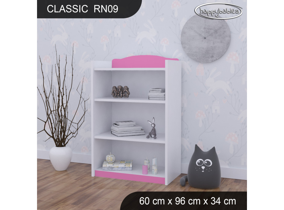 Pěkně na očích máte všechny věci, pokud si pořídíte regál s otevřenými policemi. Úložný prostor se tak kombinuje s místem, kde můžete vystavit výtvory vašeho dítěte nebo různé dekorace. Regál je ohraničený ze tří stran, aby odtud věci nepadaly. Nabízíme několik barevných provedení, jejichž základem je vždy bílá. Barevný element najdete na soklu, šuplících nebo na zadním čele. Nábytek je vyroben z 18mm laminované desky. Okraje jsou ukončeny okrajem z PVC / ABS, který je chrání před mechanickým poškozením a vlhkostí. Místo ruček slouží k otevírání šuplíků a skříněk obloukové výřezy.