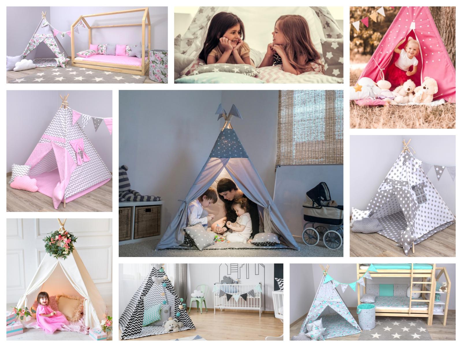 Dětský stan Teepee (Týpí) je skvělým herním i odpočinkovým místem pro vaše dítě. Tento stan bude skvělým doplňkem v každém dětském pokojíčku, na zahradě nebo na terase. Teepee (Týpí) není vyrobeno z žádných umělých materiálů, ale pouze ze 100% bavlny, která je velmi příjemná na dotek a také velmi vzdušná. Použité materiály jsou velmi kvalitní a zaručují tak dlouhou životnost stanu. Světlo uvnitř stanu můžete jednoduše regulovat za pomoci závěsů. Součástí balení je krásný polštářek ve tvaru srdíčka. Dětský stan Teepee (Týpí) je v naší nabídce ve více barevných variantách.