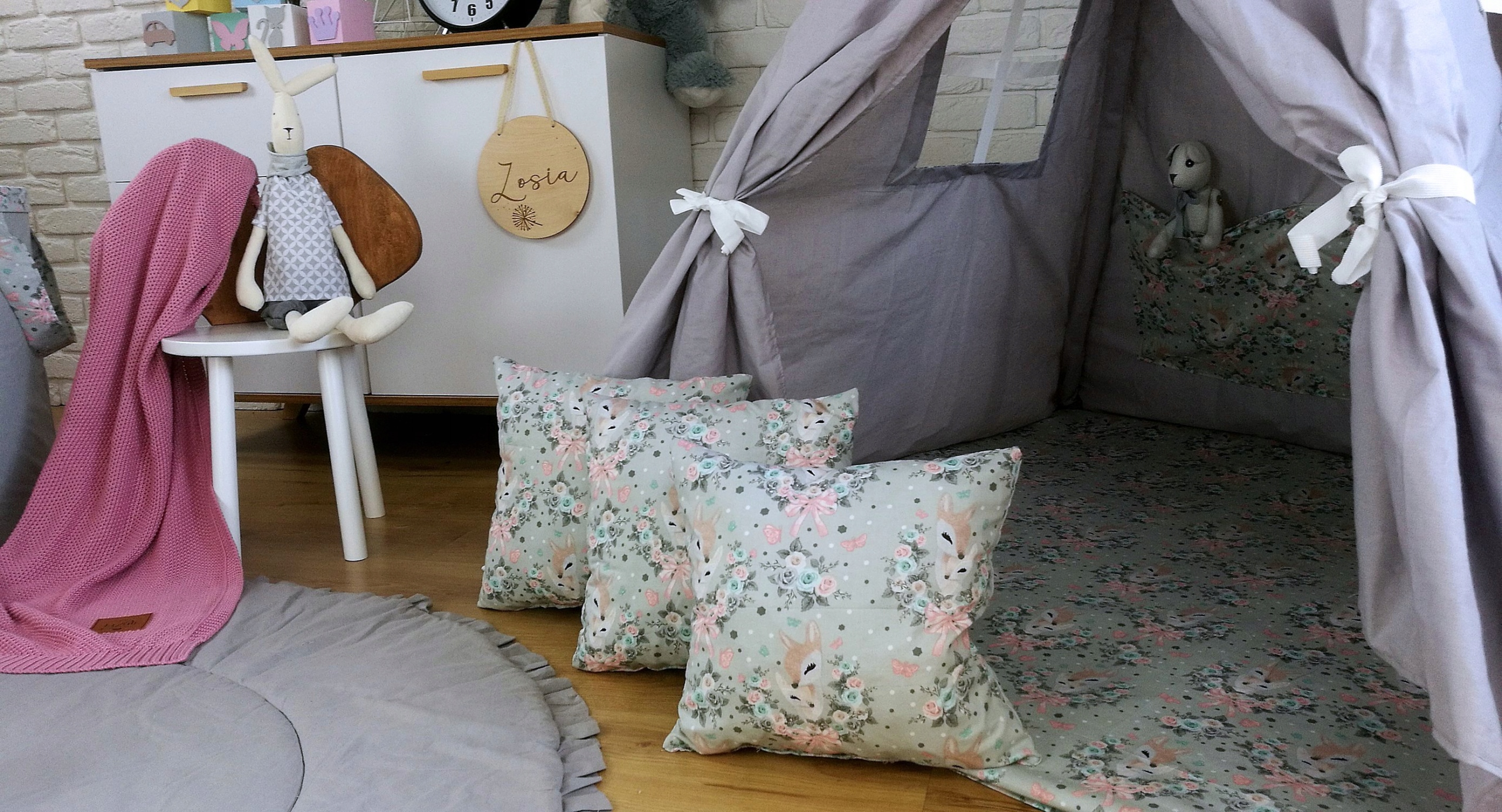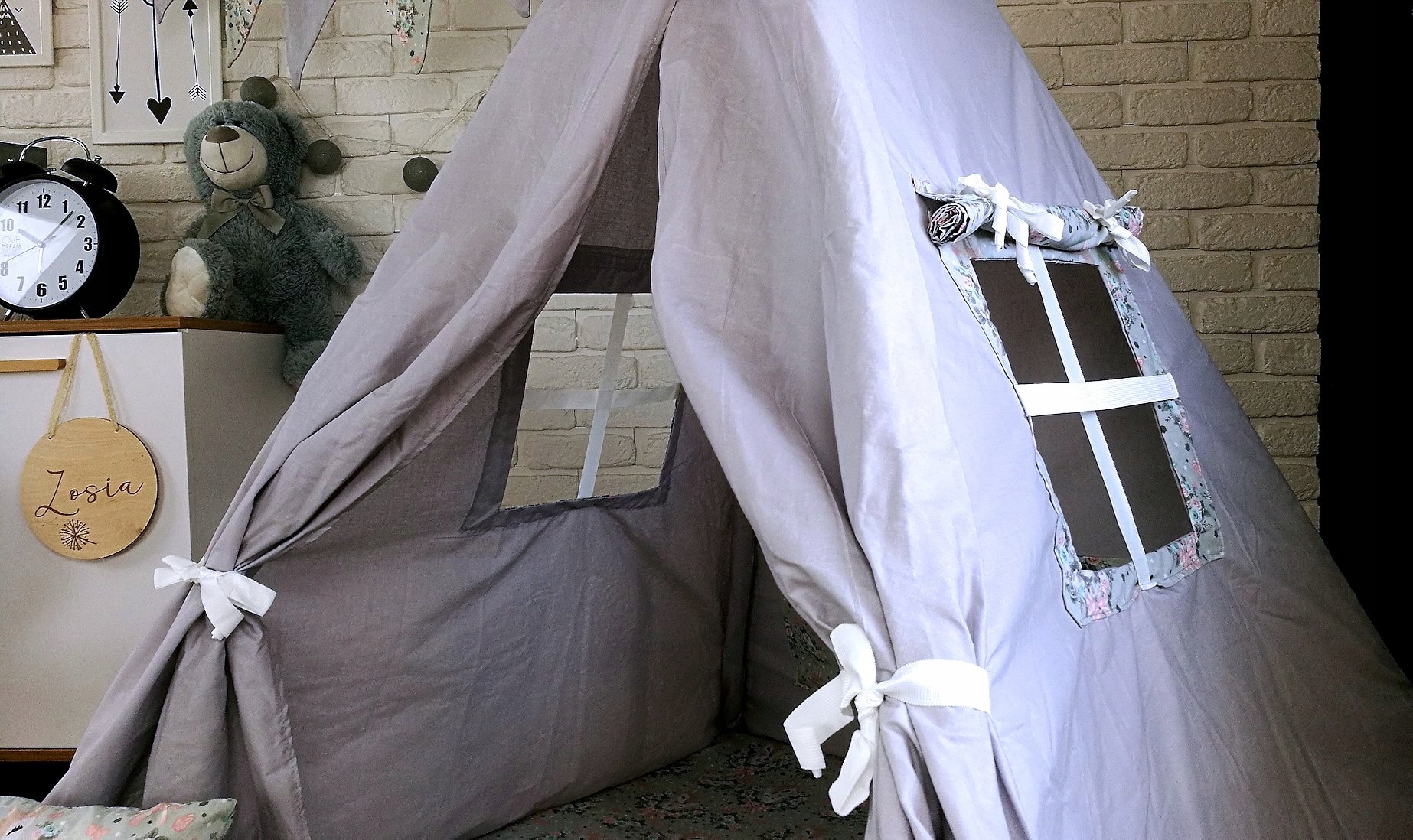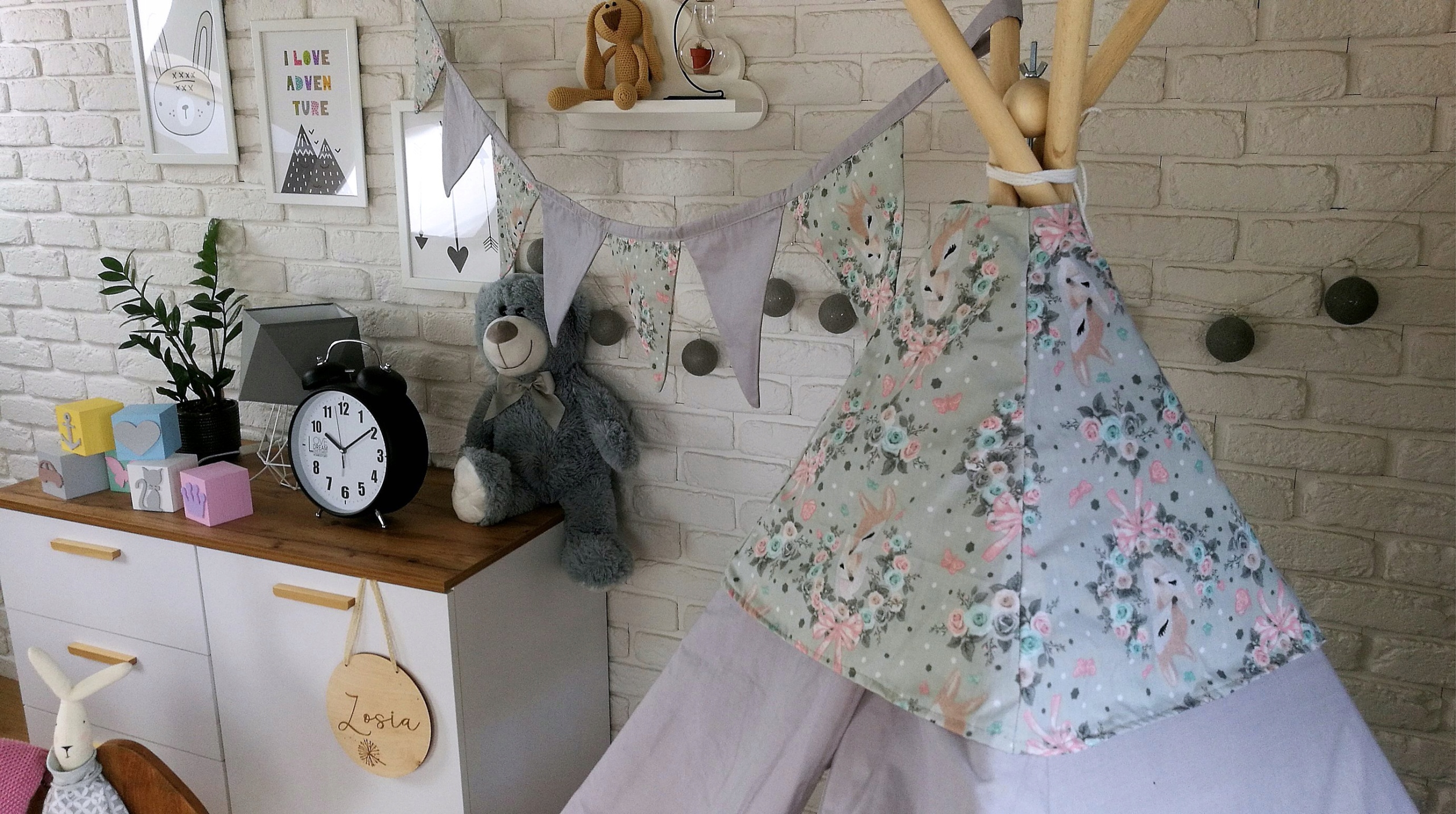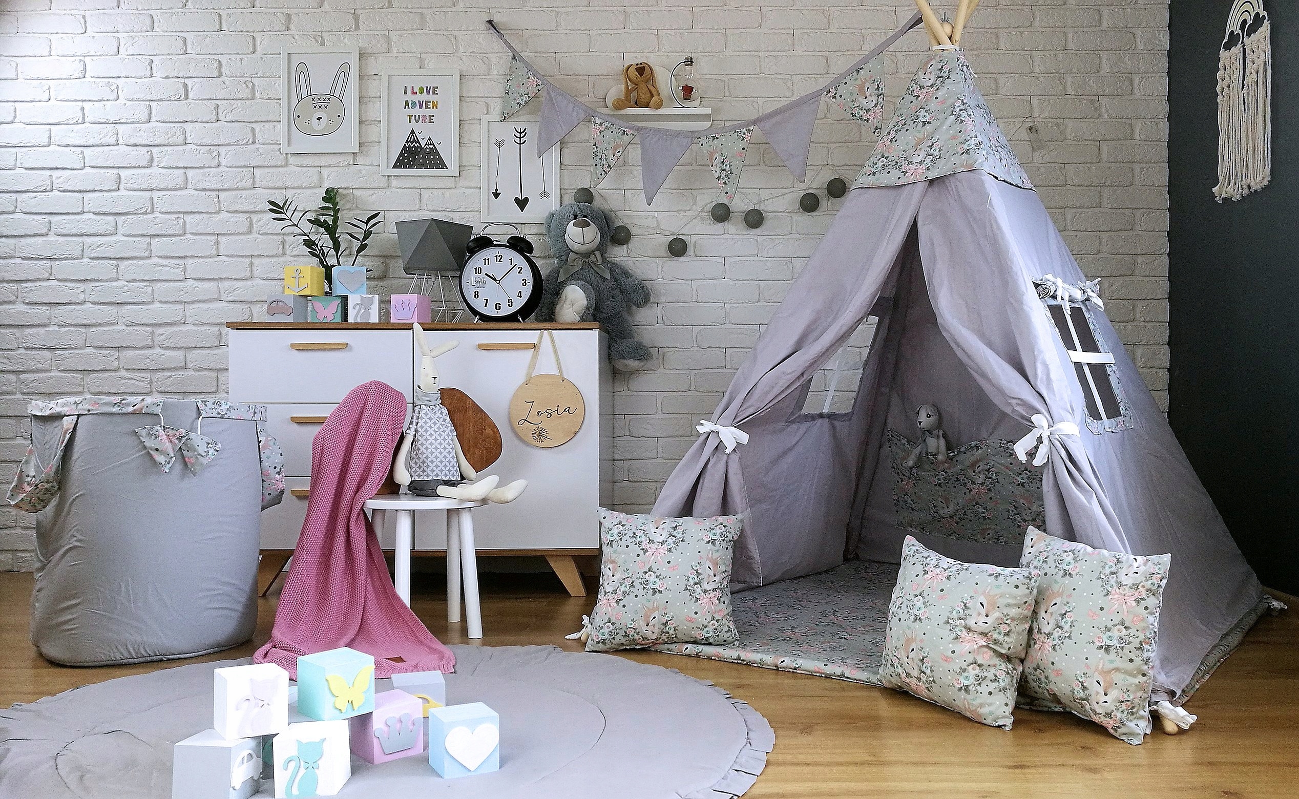 K Teepee (Týpí) je možné dokoupit také krásný a praktický koš na hračky v podobě zvířátka, který má dvojí využití. Může sloužit jako klasický koš na hračky nebo také jako uzavíratelný vak, který můžete bezpečně uzavřít pomocí šňůrky. Hračky uložené uvnitř se tak nevysypou. Dalším doplňkem k Teepee (Týpí), který můžete přikoupit je dvoubarevná girlanda se sedmi praporky, která celý komplet uvede k dokonalosti a vaše dítě bude mít ten nekrásnější pokojíček na odpočinek i na hraní.