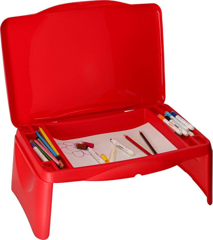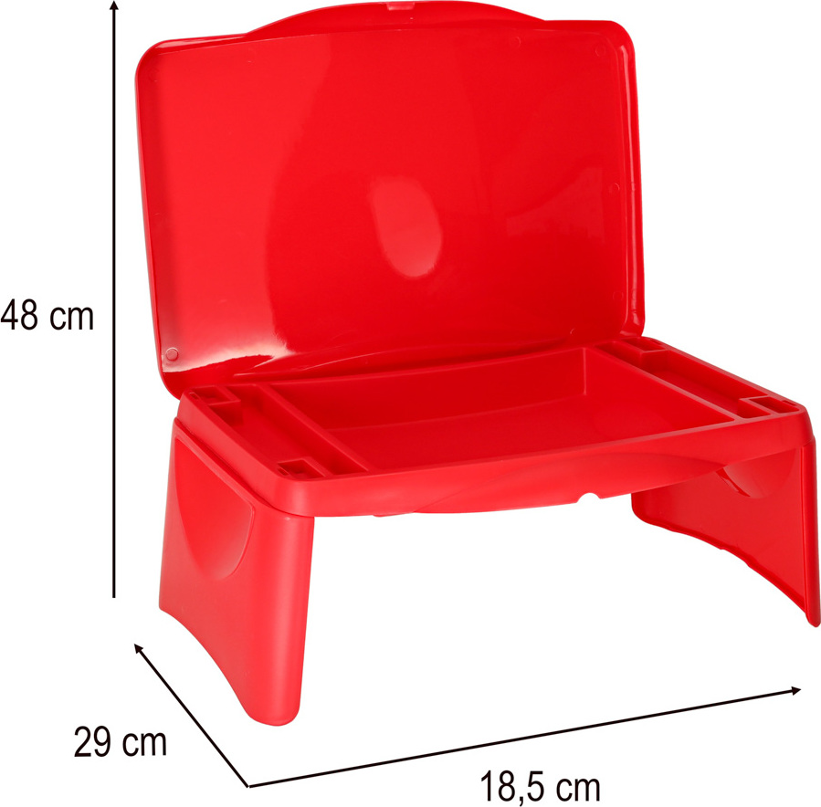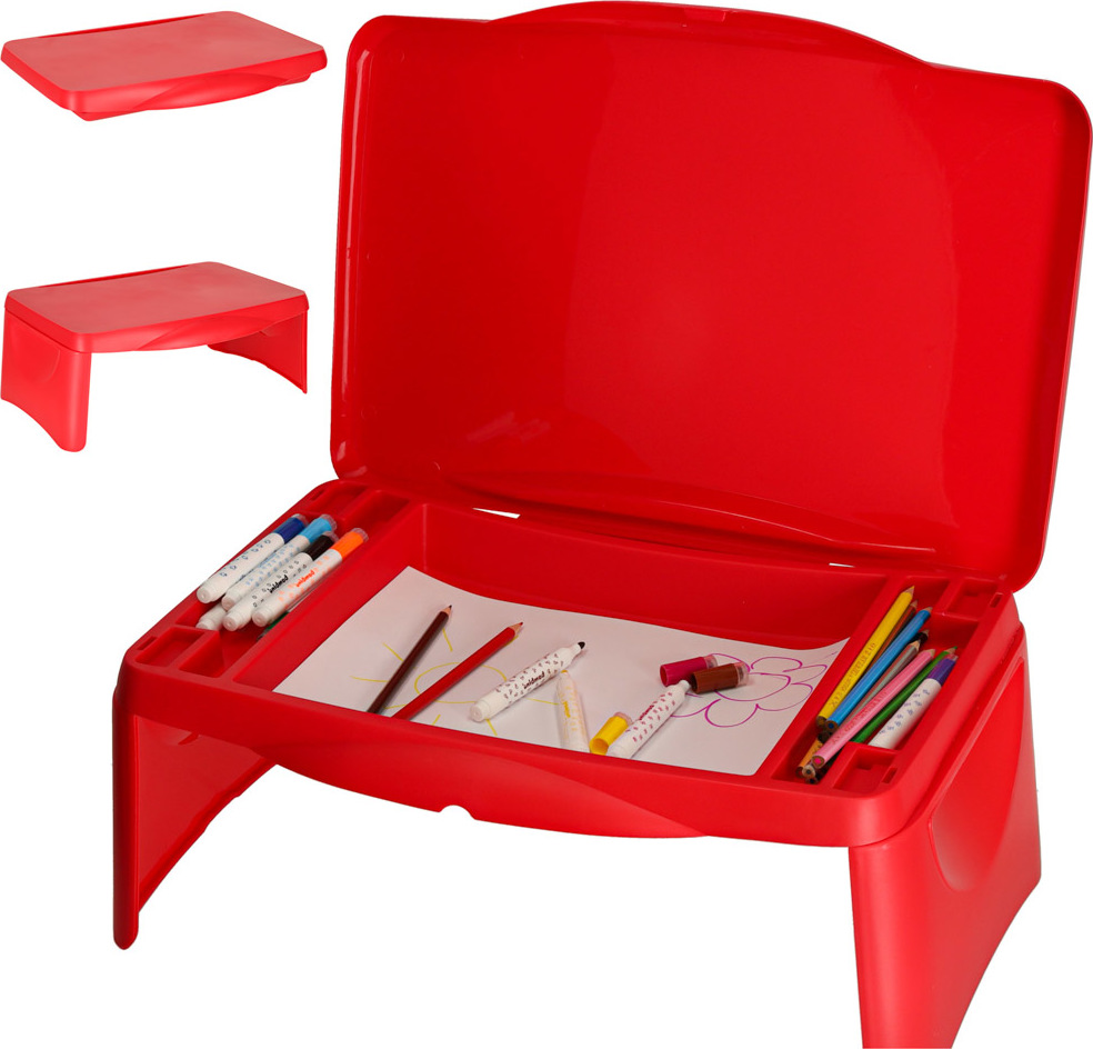 Červený stolek do auta je funkční produkt, který dětem poskytuje pohodlný prostor pro kreslení, psaní nebo studium na cestách. Disponuje praktickým úložným prostorem pro uložení příslušenství, což usnadňuje udržování pořádku v autě. Skládací konstrukce umožňuje snadné složení stolu na menší velikost, což usnadňuje jeho skladování a přepravu. Velká deska stolu poskytuje dětem pohodlné hrací místo a robustní konstrukce zajišťuje stabilitu a pohodlí.