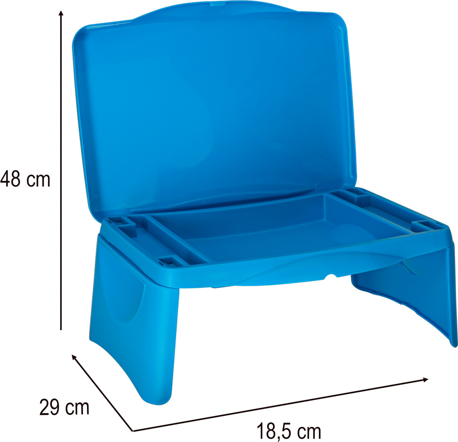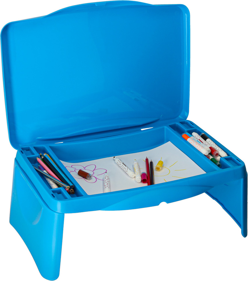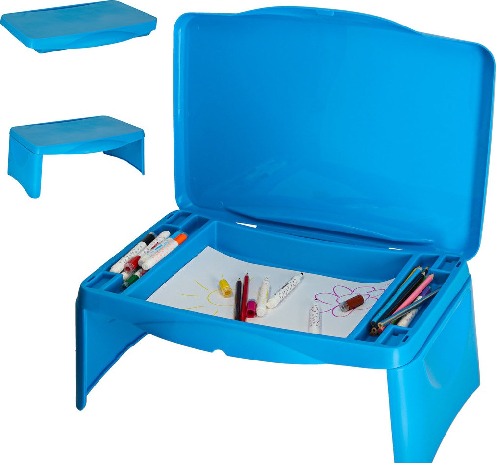 Modrý stolek do auta je funkční produkt, který dětem poskytuje pohodlný prostor pro kreslení, psaní nebo studium na cestách. Disponuje praktickým úložným prostorem pro uložení příslušenství, což usnadňuje udržování pořádku v autě. Skládací konstrukce umožňuje snadné složení stolu na menší velikost, což usnadňuje jeho skladování a přepravu. Velká deska stolu poskytuje dětem pohodlné hrací místo a robustní konstrukce zajišťuje stabilitu a pohodlí.