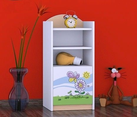 NÁŠ TIP: Ve stejném motivu jako dětský regál můžete u nás zakoupit také dětskou postel, noční stolek, komodu, box na hračky, dětskou poličku, psací stůl nebo skříň.