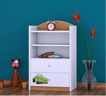 NÁŠ TIP: Ve stejném motivu jako dětský regál můžete u nás zakoupit také dětskou postel, noční stolek, komodu, box na hračky, dětskou poličku, psací stůl nebo skříň.