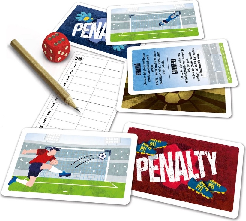 Útočník se rozbíhá, napřahuje se a GÓÓÓL!!! Brankář sice vystihl směr, ale útočník ranou do šibenice zajišťuje svému týmu vedení! Svižná česká karetní hra pro až 4 hráče od 5 let, která má všechno, co má správný penaltový rozstřel mít. Napětí, štěstí, odhad protihráče a sladkou chuť vítězství. Jedno fotbalové utkání zabere 10 minut. Tato hra od českých autorů vás zabaví nejen na cestách!