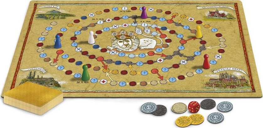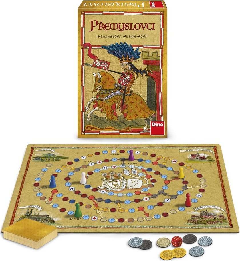 Cestujte v čase a přeneste se do doby vlády Přemyslovců. Z hory Říp vás tam dovede spirála času, na jejímž konci čeká dvouocasý český lev. Dotknete se drahokamů na jeho koruně jako první? Pak v historickém klání zvítězíte! Jako bonus si užijete chytrou zábavu a zopakujete si důležitá fakta o jedné z nejvýznamnějších panovnických dynastií naší země. Hra Přemyslovci důvtipně kombinuje strategii s vědomostními prvky, takže hráče nejen vzdělává, ale hlavně baví. Balení obsahuje: 1 herní plán, 48 karet s otázkami, 12 karet s osobnostmi, 80 mincí, 6 figurek, 1 hrací kostku, 1 pravidla. Vhodné pro děti od 8 let.Vlastnosti