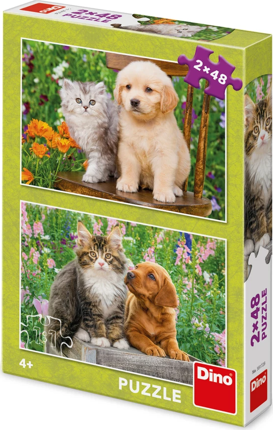 DINO Puzzle Pejsek a kočička na zahradě 2x48 dílků