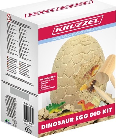 Dinosauří vejce na vykopávky - kreativní zábava pro fanoušky dinosaurů! Vajíčko je určeno pro děti ve věku od 3 do 10 let. Aby se zabránilo zbytečnému znečištění, stačí vajíčko ponořit do teplé vody, která snižuje prašnost, a použít podložku. Tato hra pomáhá dětem rozvíjet klíčové dovednosti jako např koordinace oko-ruka, koncentrace, trpělivost a manuální přesnost. Sada obsahuje až 12 dinosaurů a 2 překvapení, která poskytují mnoho hodin poutavé a kreativní zábavy, perfektní způsob, jak rozvíjet svou představivost a zájem o pravěký svět! Masivní kladivo a dláto vydrží intenzivní průzkum a kartáč umožňuje jemné čištění.