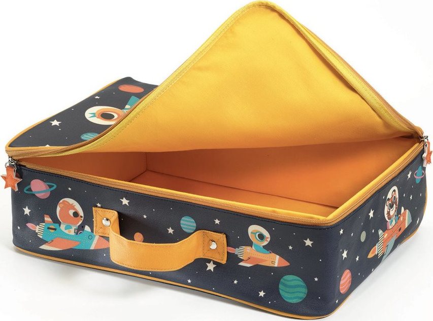 Kufřík z pevného plátna s rukojetí v jemných barvách je hezky ilustrovaný vesmírným dekorem. Kufřík je vodotěsný, uvnitř jsou dvě přihrádky a 2 kapsy. Je lehký a díky rukojeti se jednoduše přenáší. Uzavíratelný pomocí kvalitního obousměrného zipu. Kufřík lze čistit pouze omytím povrchu.