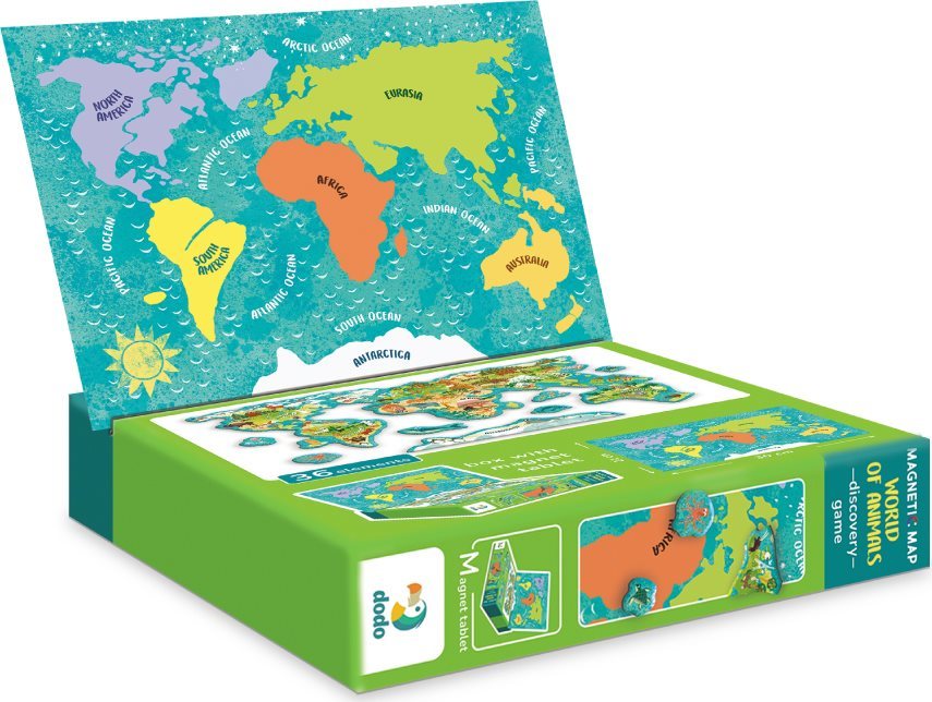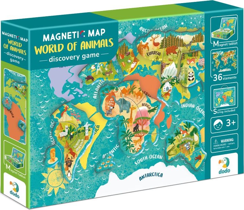 DODO Magnetická hra - Mapa světa se zvířaty