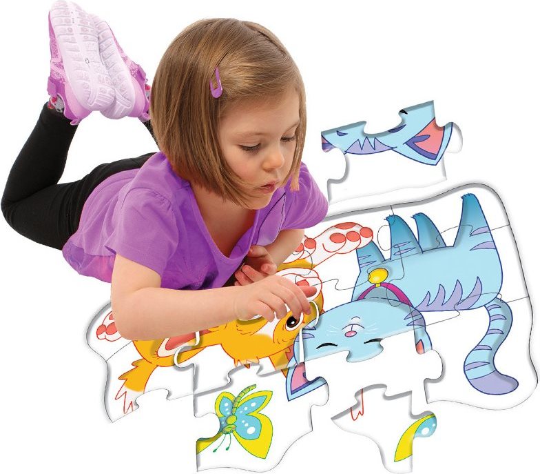 DOHÁNY Podlahové obrysové puzzle Pejsek a kočička 12 dílků