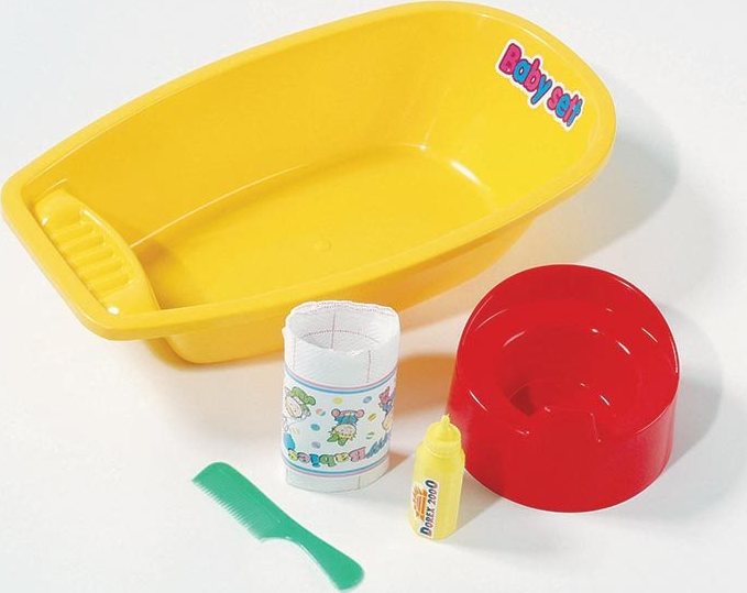 Balení obsahuje: vaničku, nočník, hřebínek, osuška, lahvička.